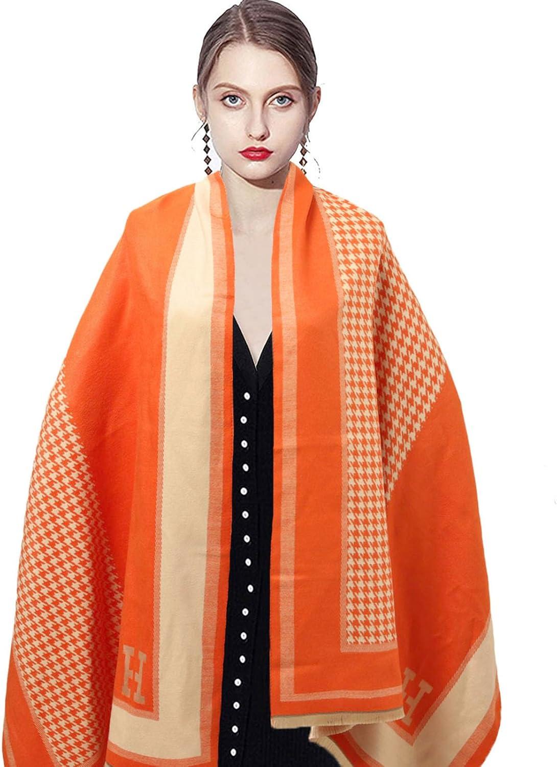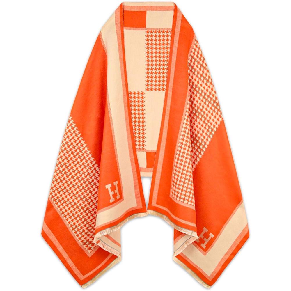 EXTREE Scarfs for Women Pashmina Silky Shawl Wrap for Evening Dressing Blanket Open Front Poncho Cape(Aer-orange)