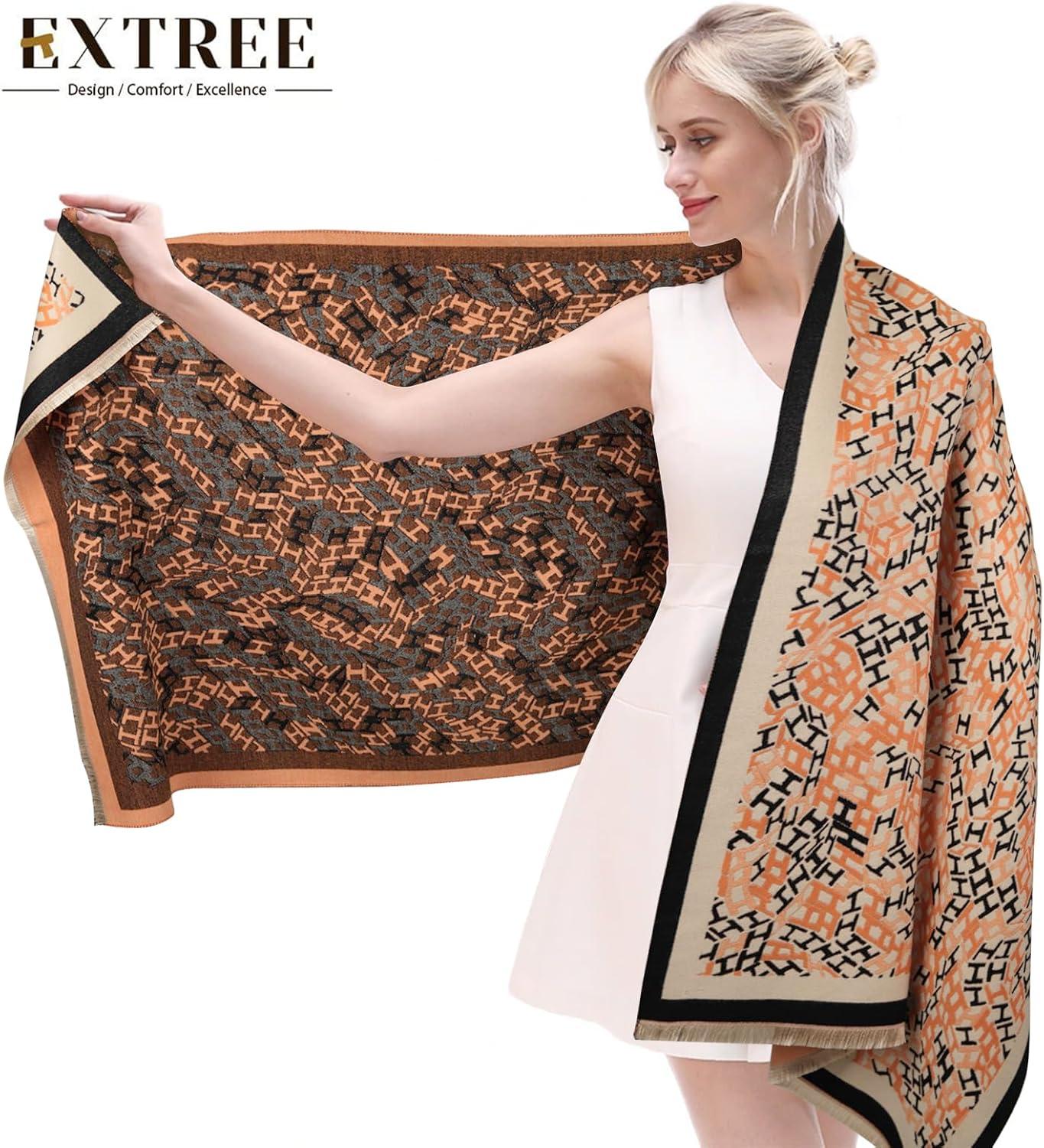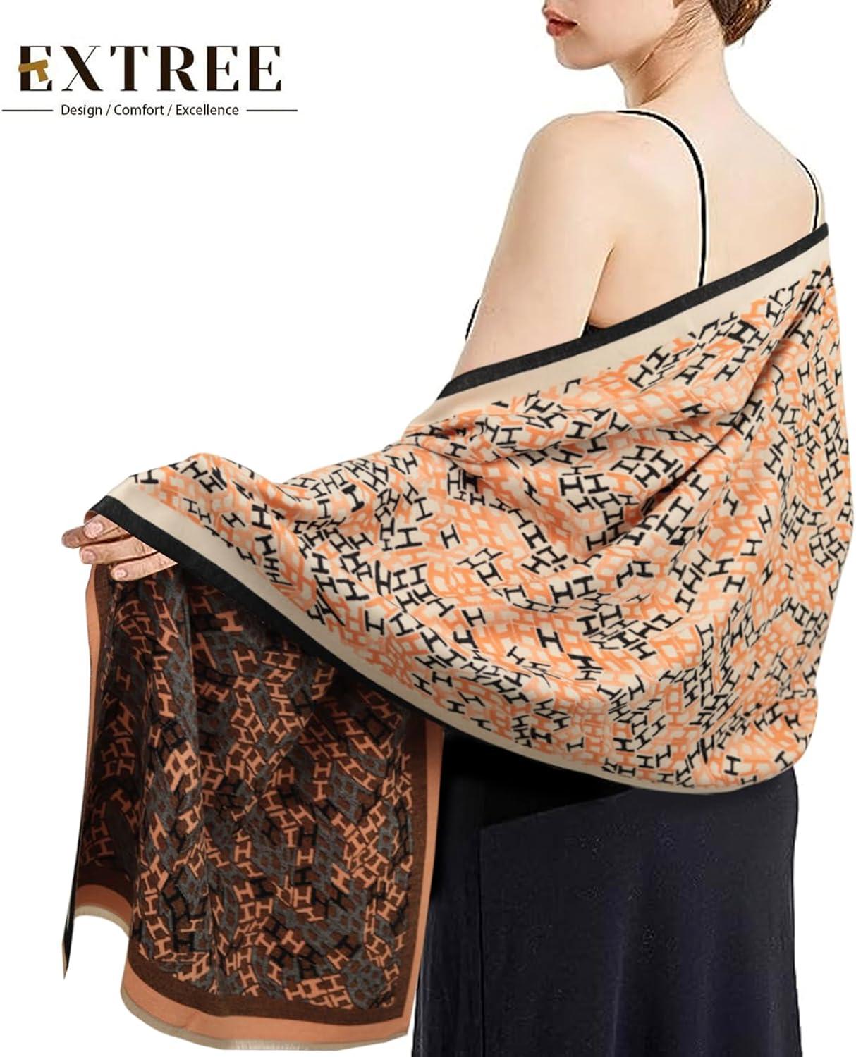 EXTREE Scarfs for Women Pashmina Silky Shawl Wrap for Evening Dressing Blanket Open Front Poncho Cape(Afd-orange)