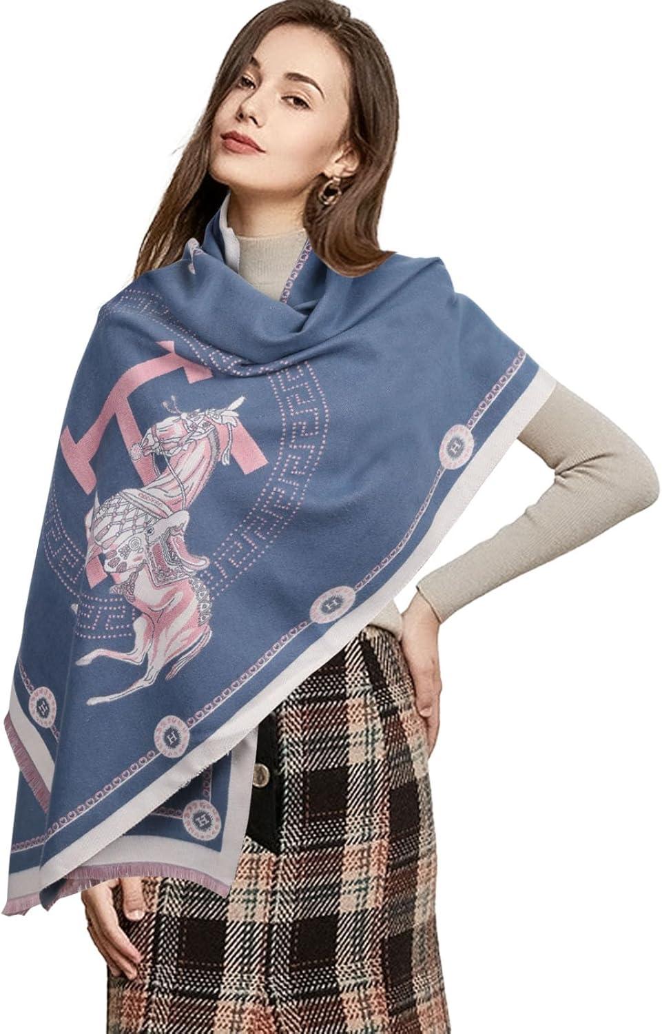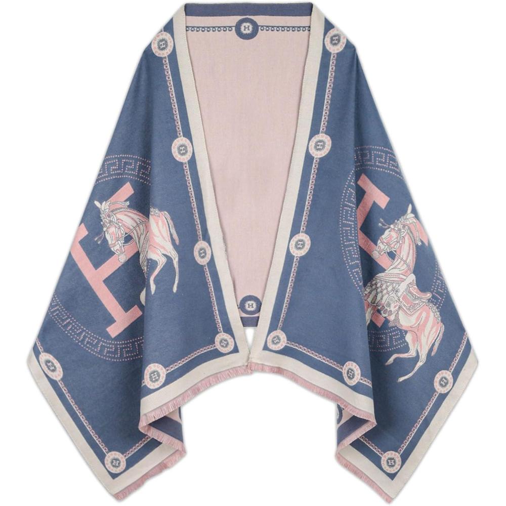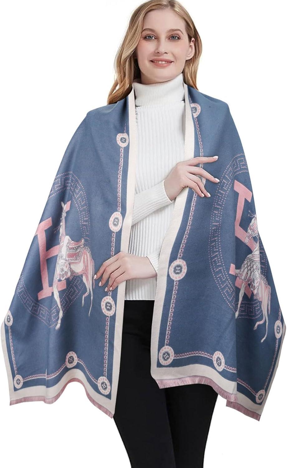 EXTREE Scarfs for Women Pashmina Silky Shawl Wrap for Evening Dressing Blanket Open Front Poncho Cape(Afy-blue-horse)