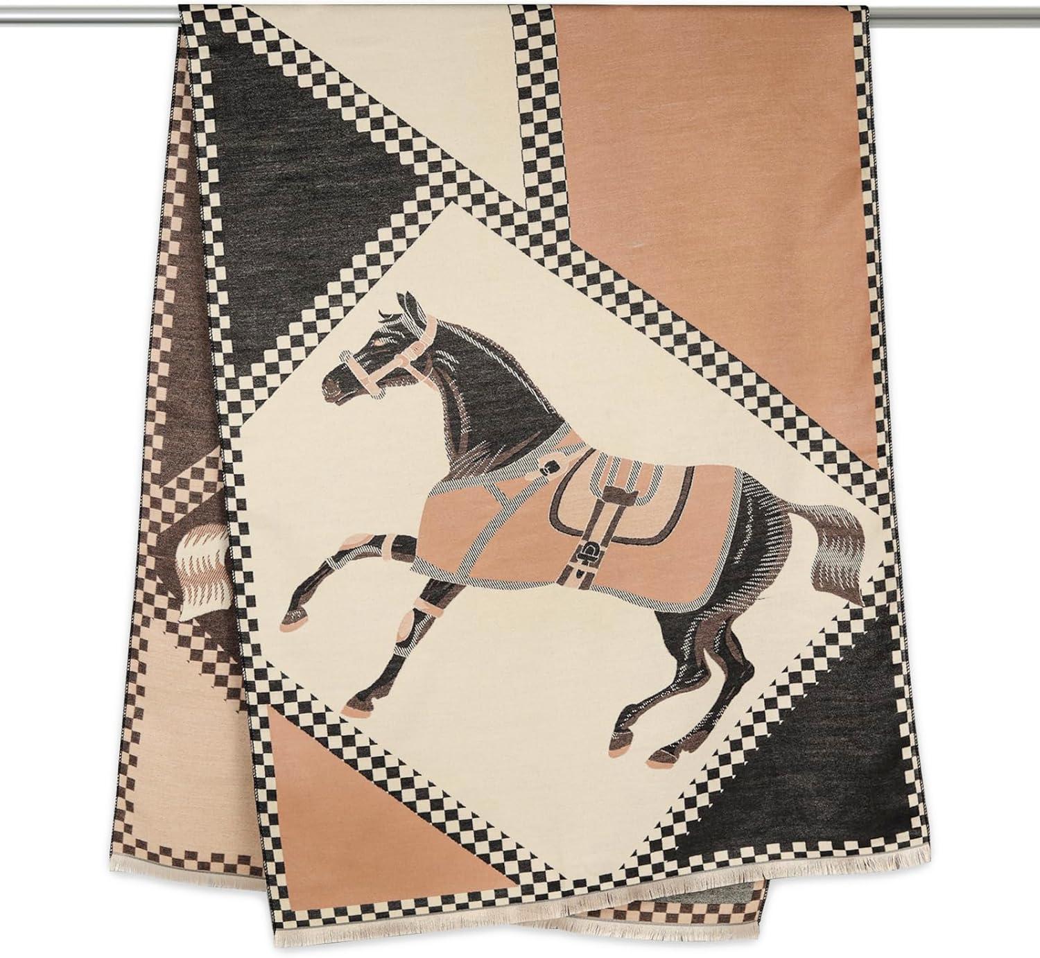 EXTREE Scarfs for Women Pashmina Silky Shawl Wrap for Evening Dressing Blanket Open Front Poncho Cape(Afy-blue-horse)