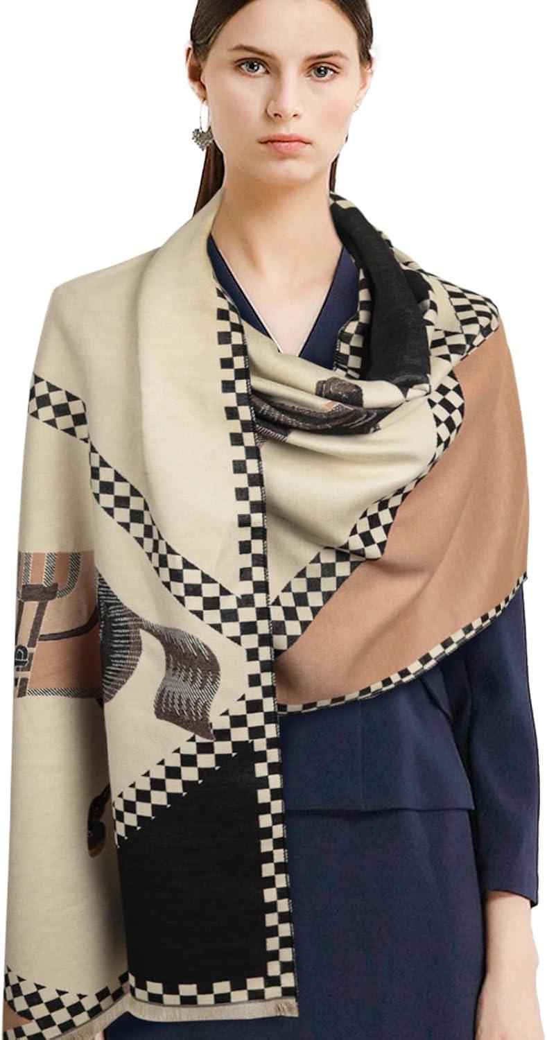 imageEXTREE Scarfs for Women Pashmina Silky Shawl Wrap for Evening Dressing Blanket Open Front Poncho CapeAfzmilk Yellowkhakihorse