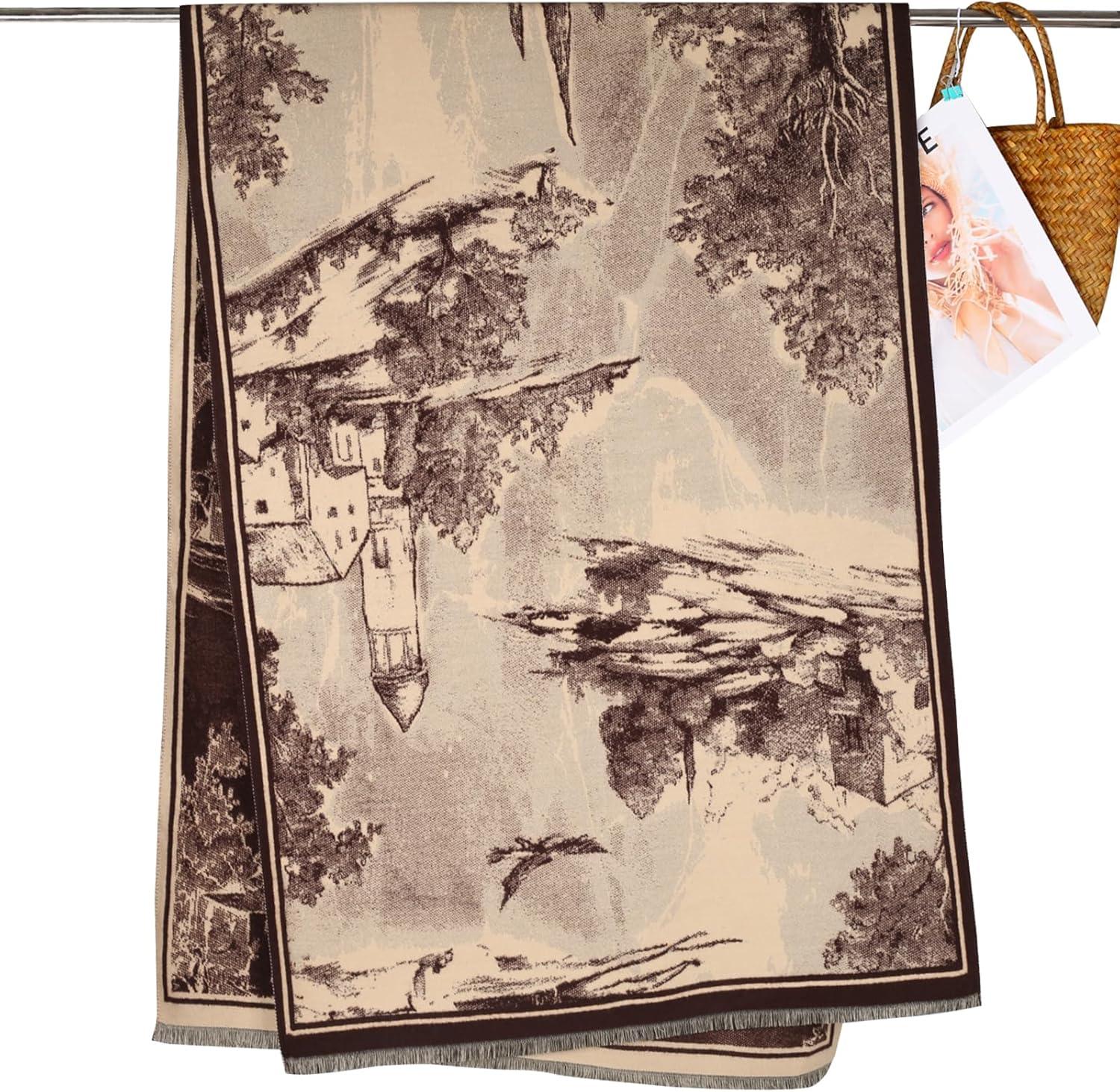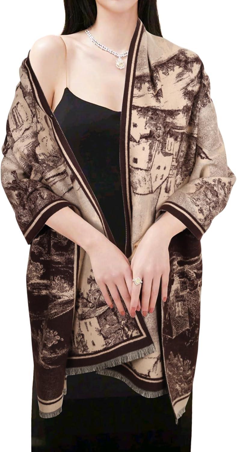 EXTREE Scarfs for Women Pashmina Silky Shawl Wrap for Evening Dressing Blanket Open Front Poncho Cape(Agh-black-castle)