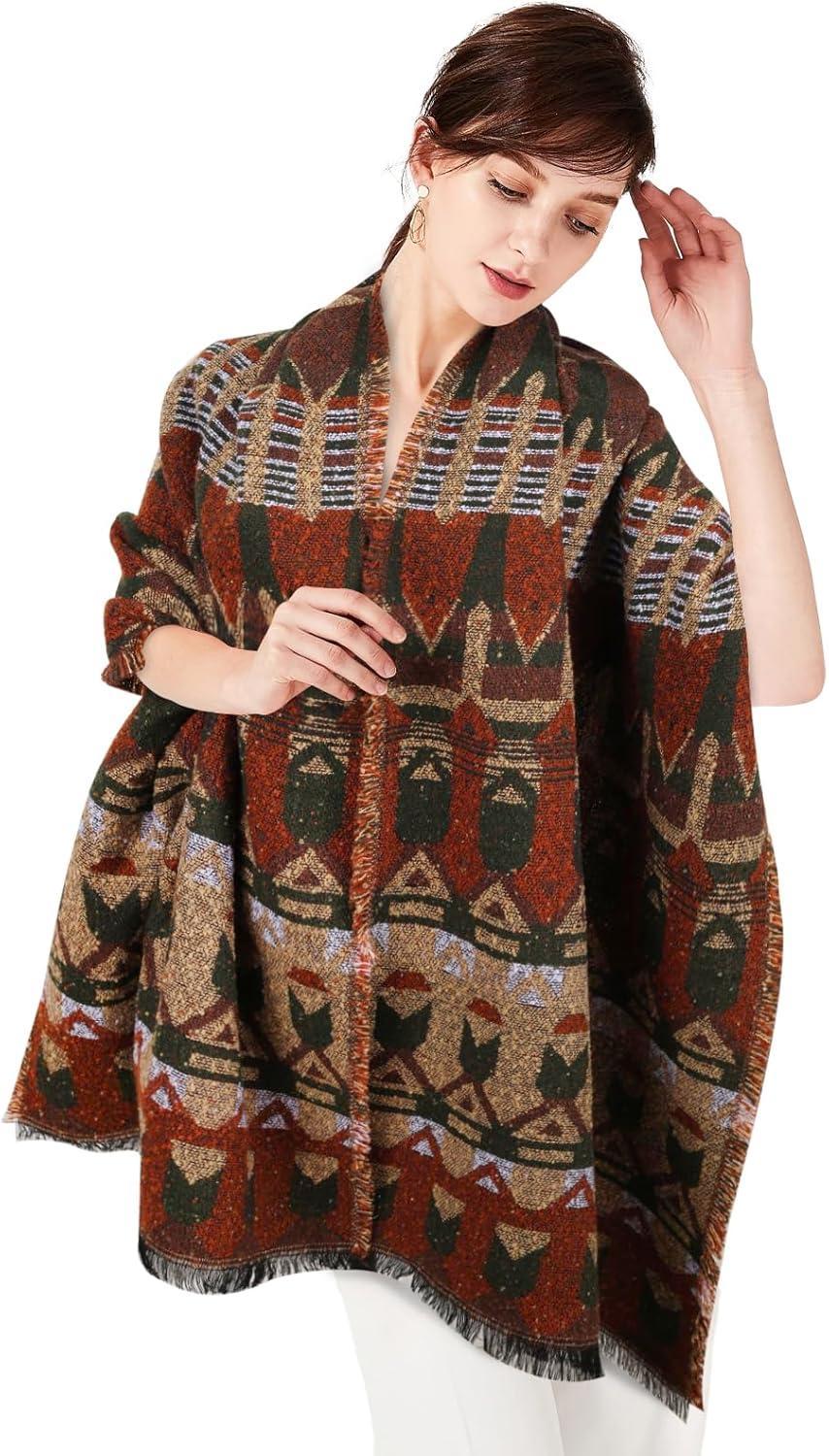 EXTREE Scarfs for Women Pashmina Silky Shawl Wrap for Evening Dressing Blanket Open Front Poncho Cape(Agk-brown-arrows)