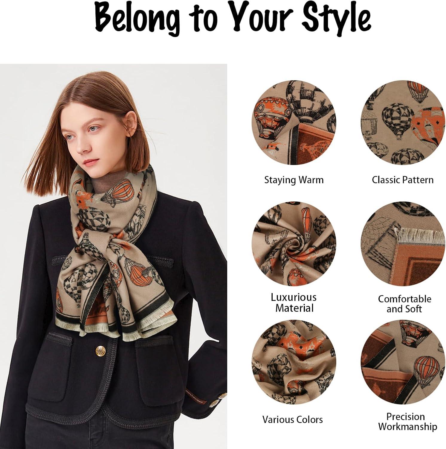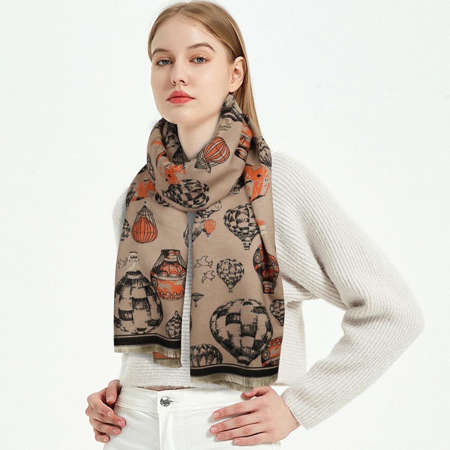 EXTREE Scarfs for Women Pashmina Silky Shawl Wrap for Evening Dressing Blanket Open Front Poncho Cape(Agm-peachpuff-hot Air Balloon)