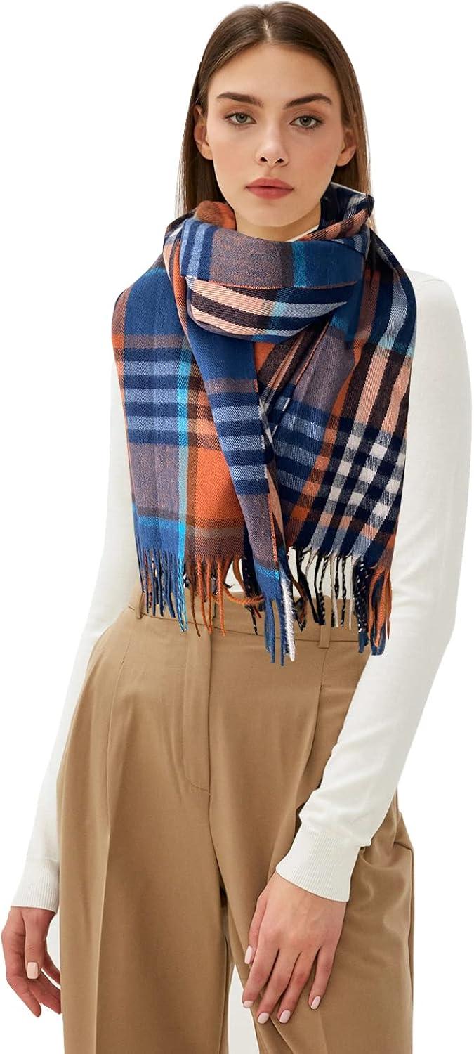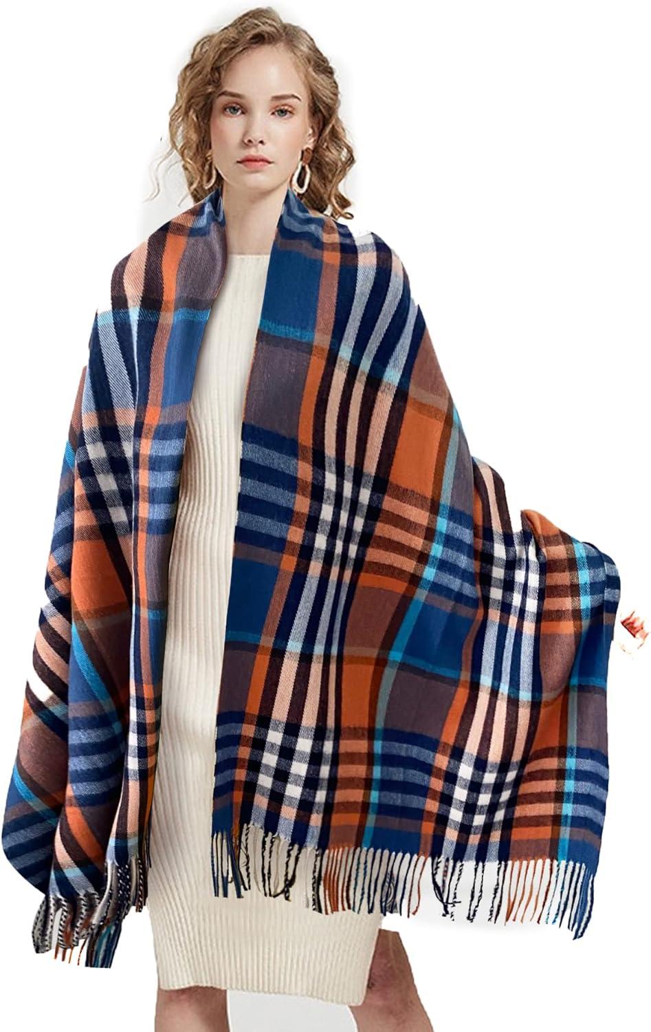 EXTREE Scarfs for Women Pashmina Silky Shawl Wrap for Evening Dressing Blanket Open Front Poncho Cape(Ahh-orange-blue)