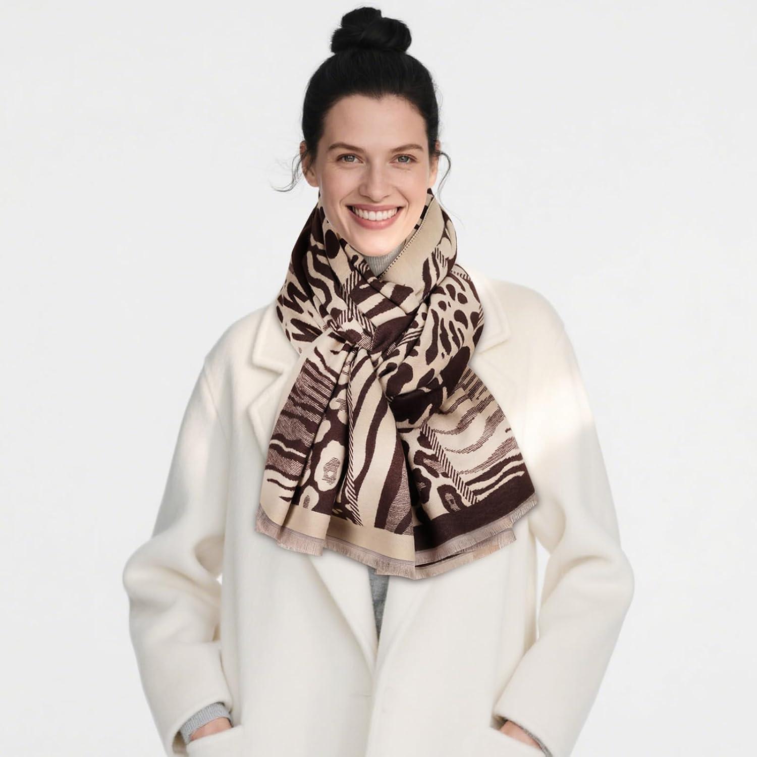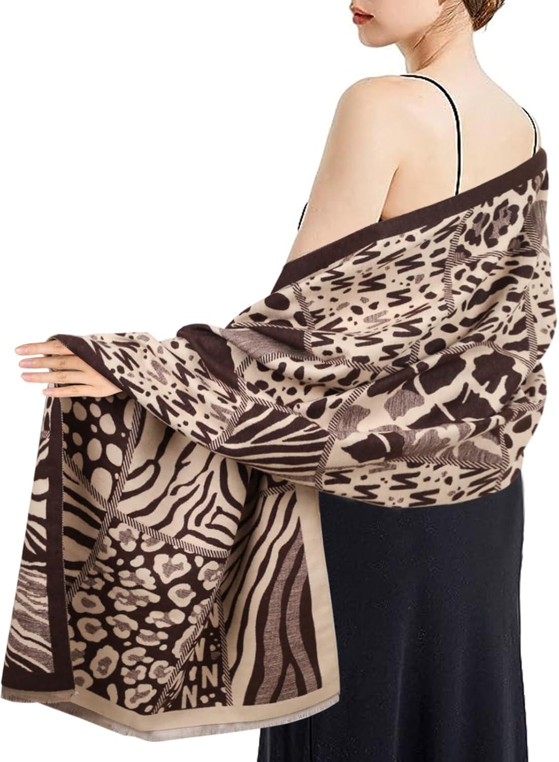 EXTREE Scarfs for Women Pashmina Silky Shawl Wrap for Evening Dressing Blanket Open Front Poncho Cape(Ahr-khaki-dark Brown)
