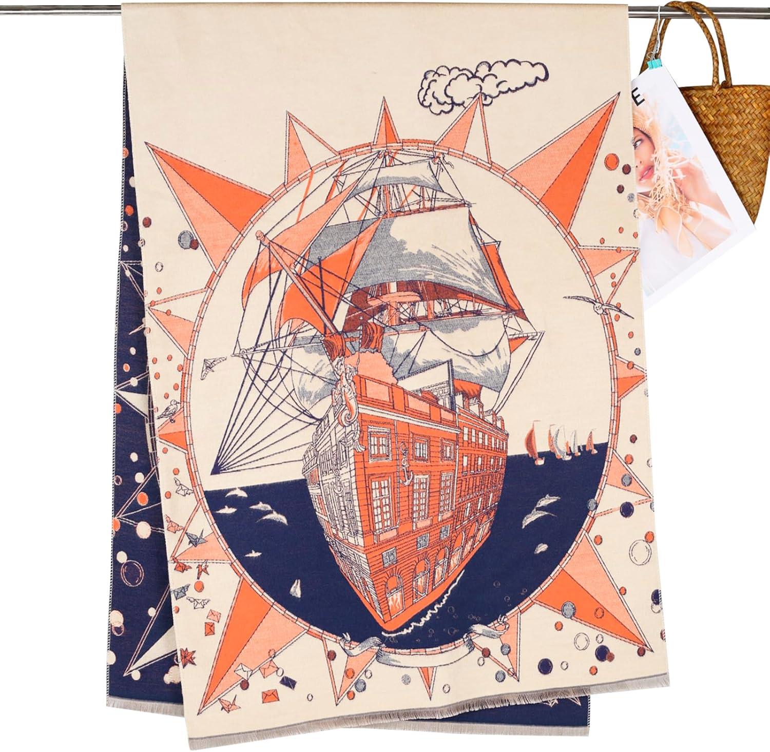 EXTREE Scarfs for Women Pashmina Silky Shawl Wrap for Evening Dressing Blanket Open Front Poncho Cape(Ahu-beige-orange-ship)