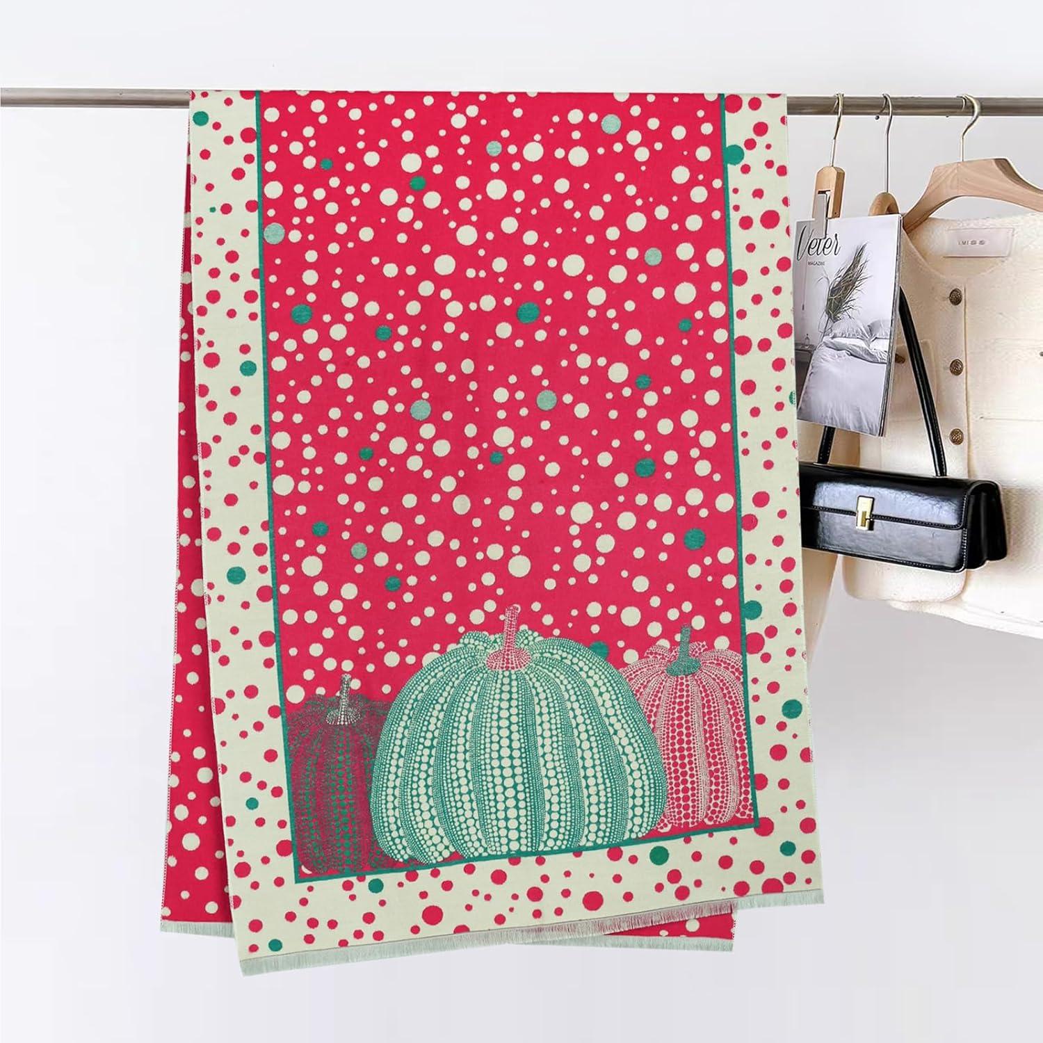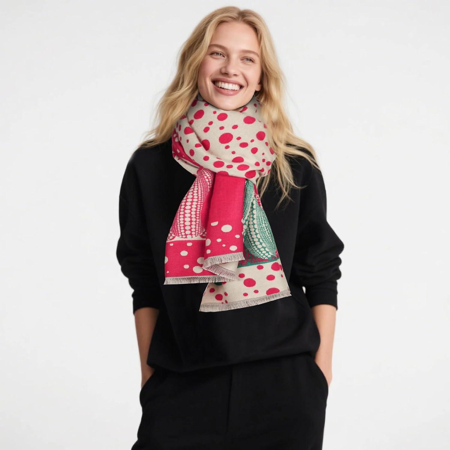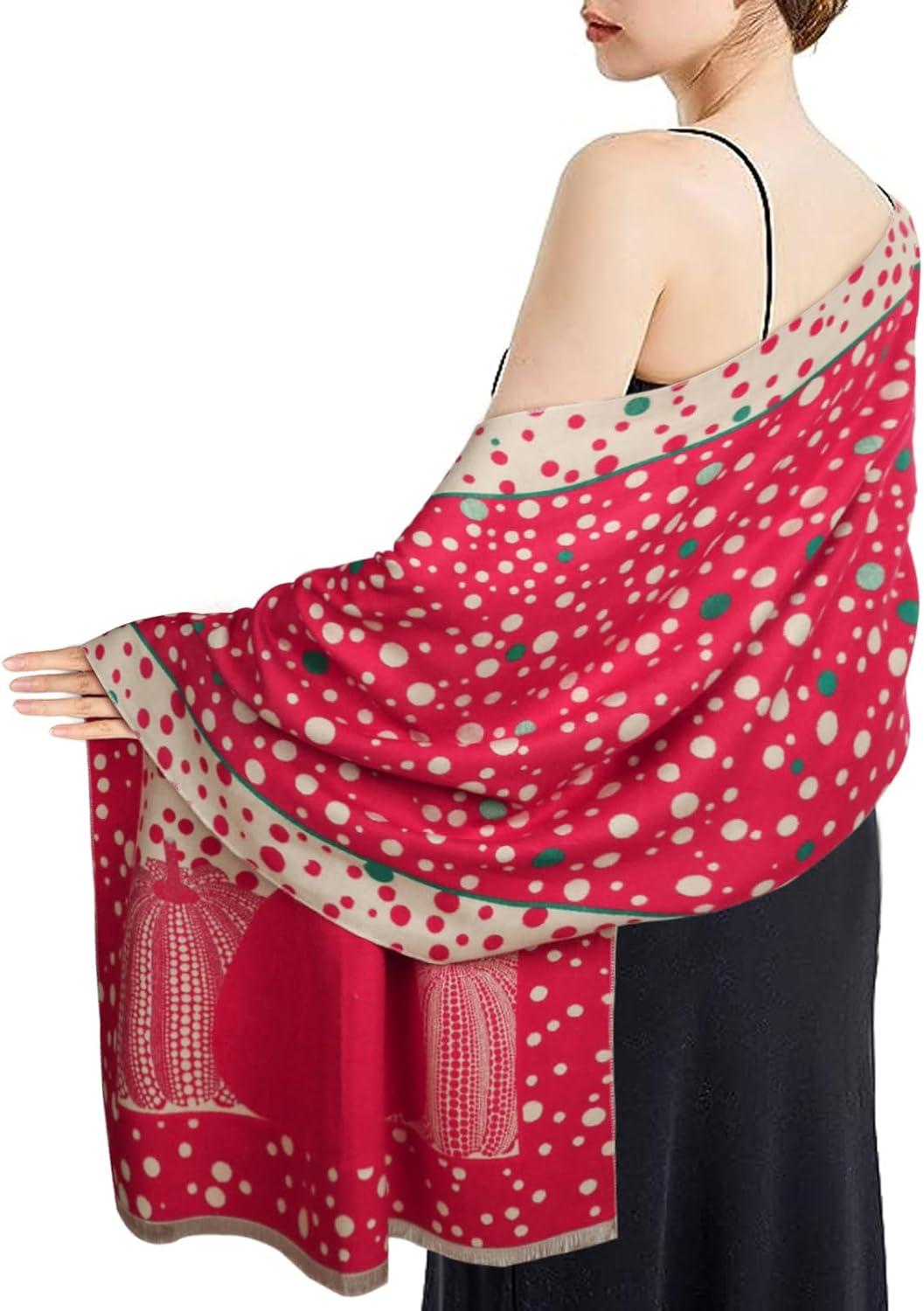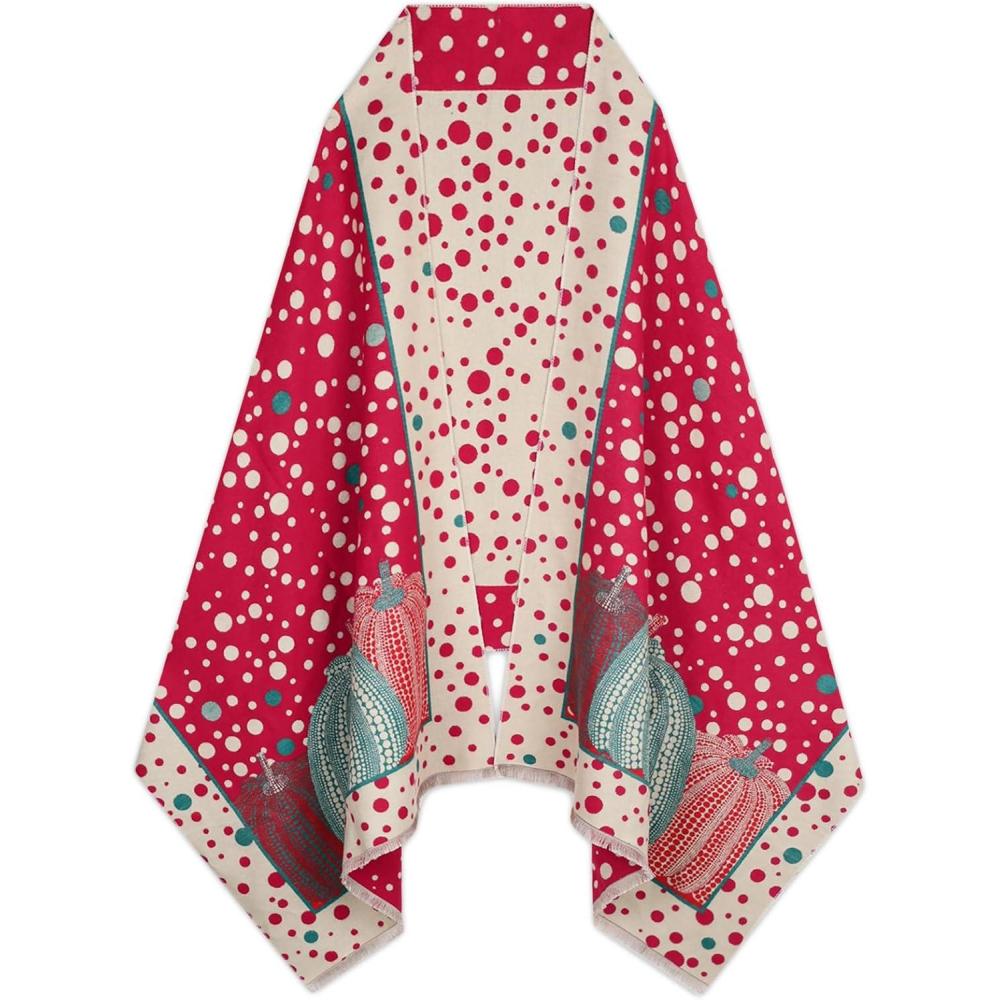 EXTREE Scarfs for Women Pashmina Silky Shawl Wrap for Evening Dressing Blanket Open Front Poncho Cape(Ahw-red-points)