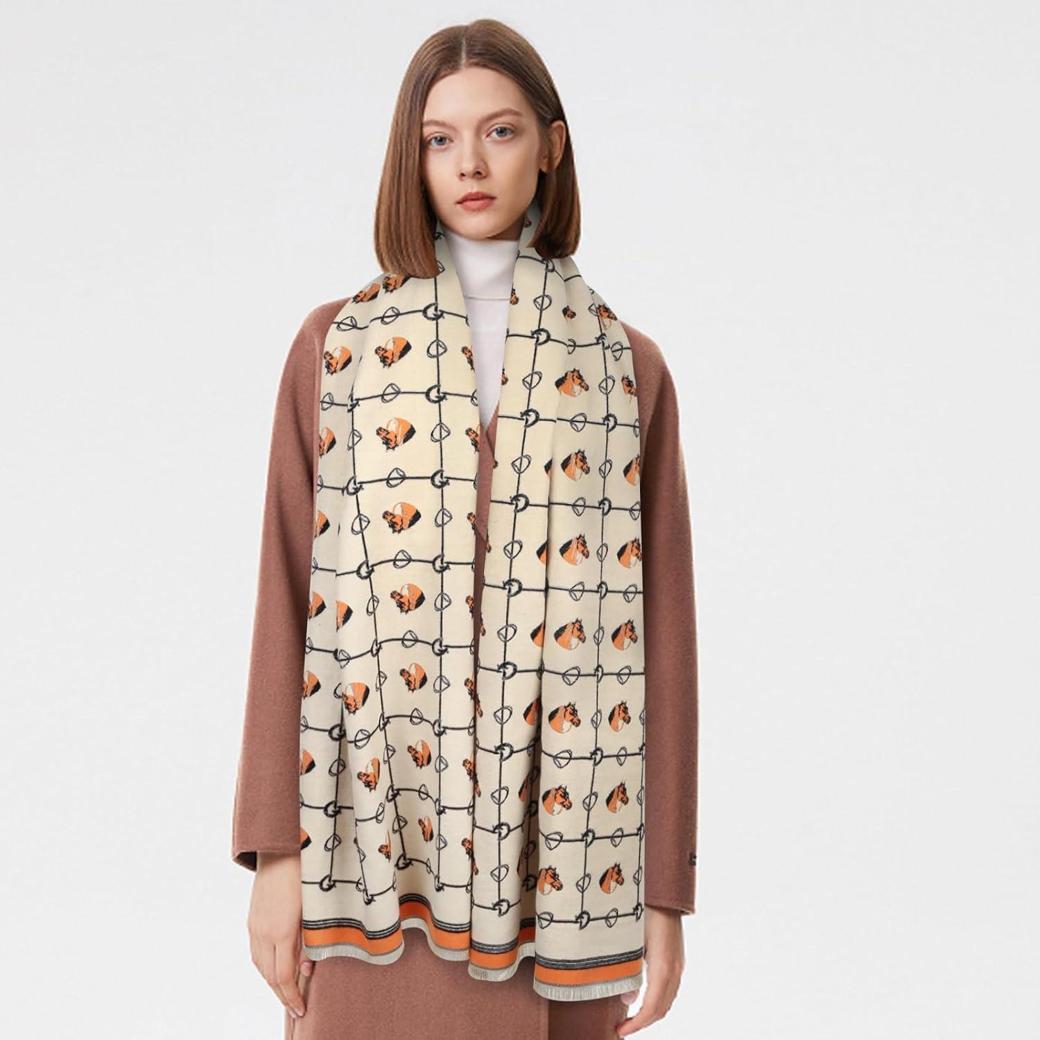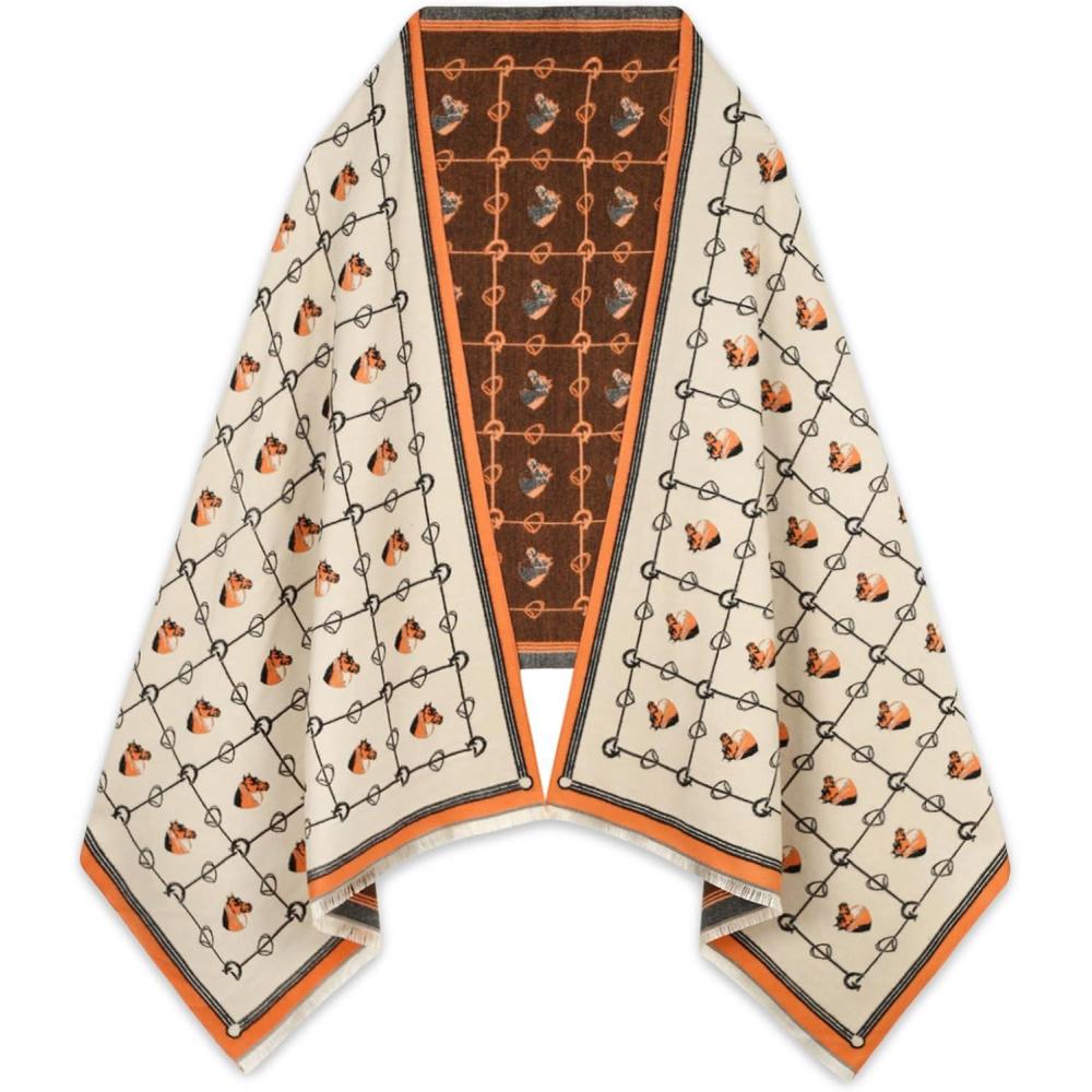 EXTREE Scarfs for Women Pashmina Silky Shawl Wrap for Evening Dressing Blanket Open Front Poncho Cape(Ais-beige-horse)