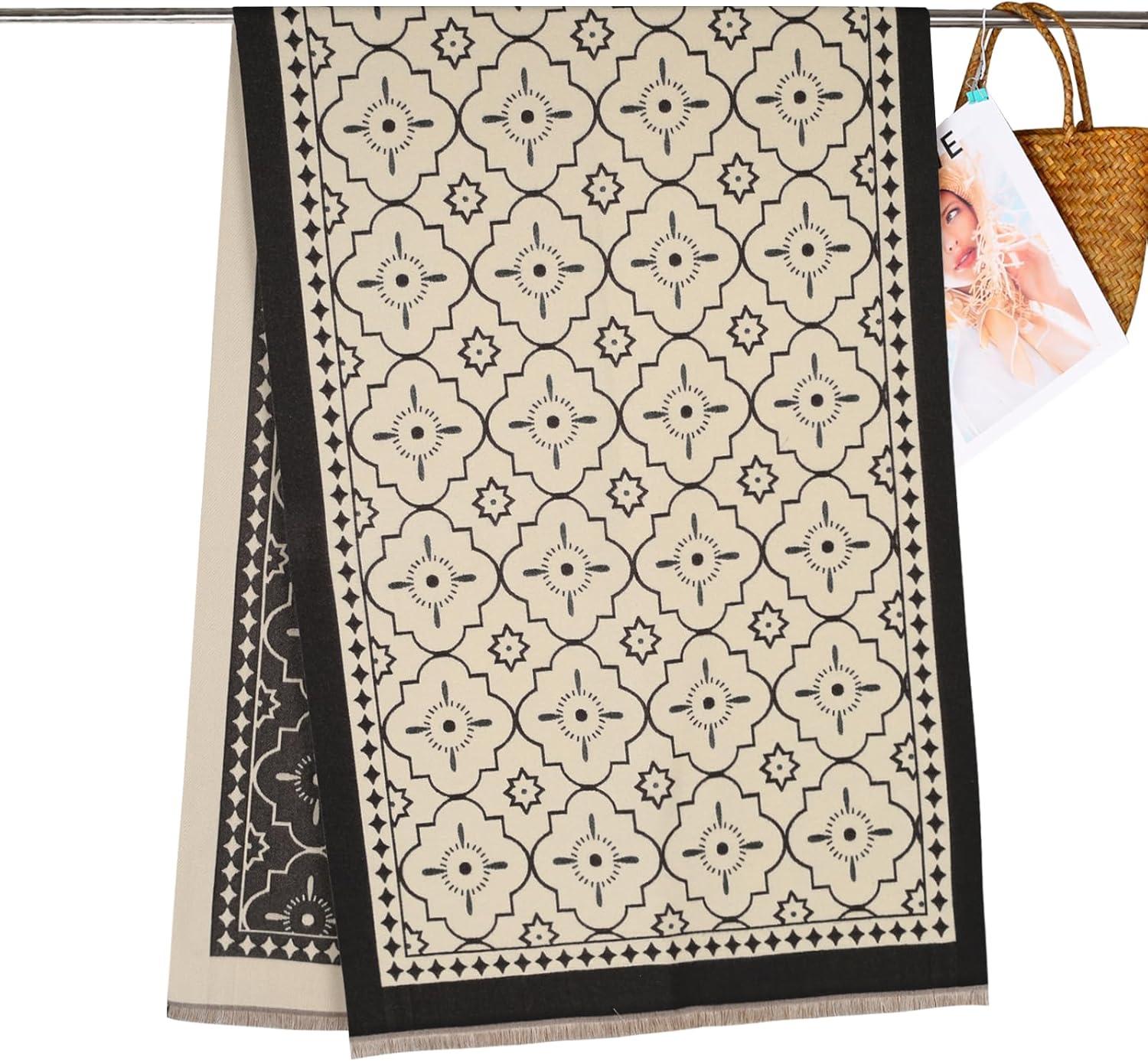 EXTREE Scarfs for Women Pashmina Silky Shawl Wrap for Evening Dressing Blanket Open Front Poncho Cape(Aja-black-white-geometric Diagram)