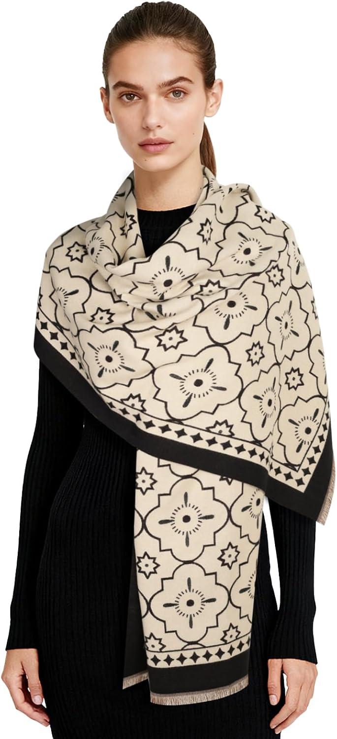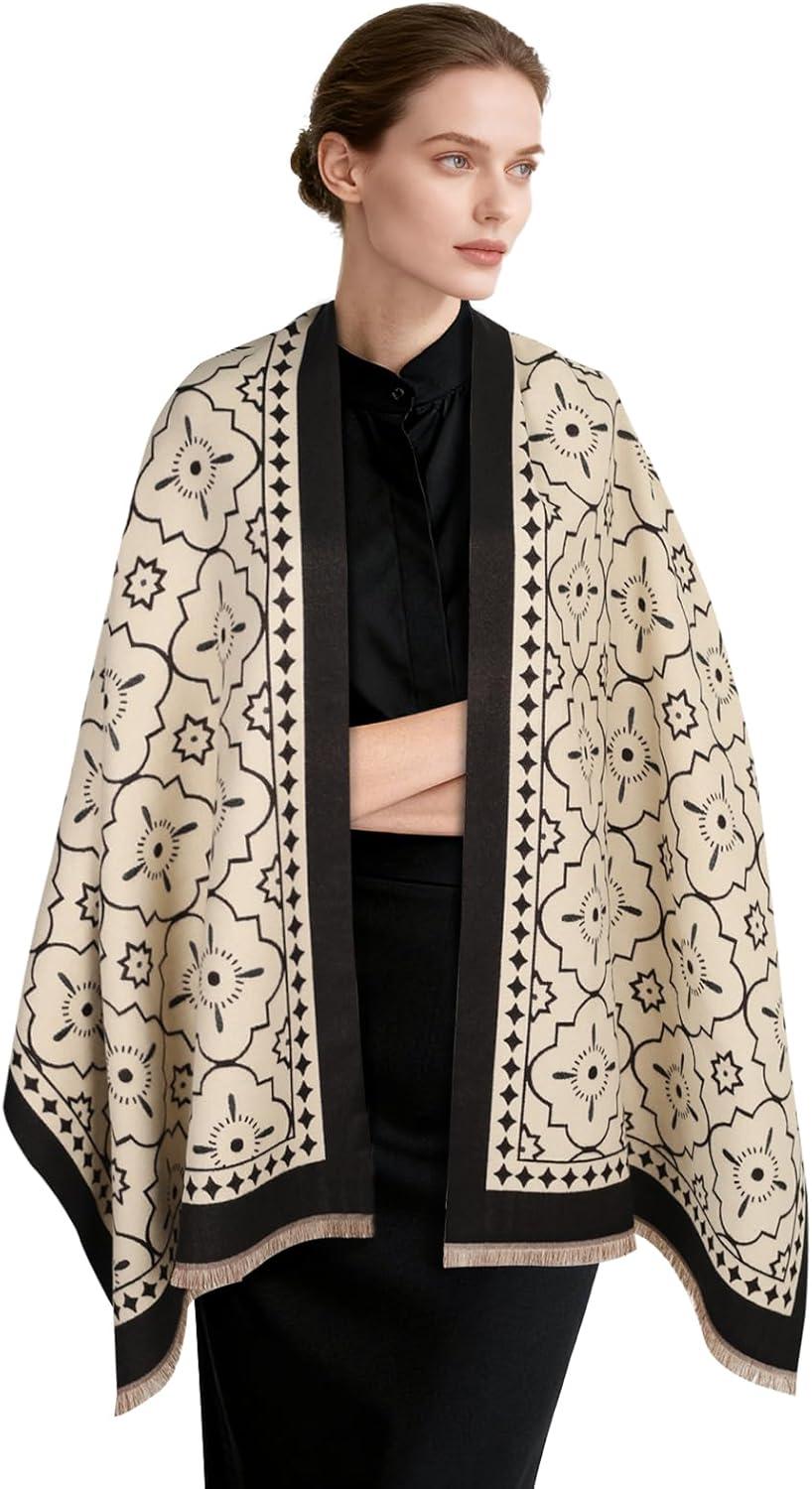 EXTREE Scarfs for Women Pashmina Silky Shawl Wrap for Evening Dressing Blanket Open Front Poncho Cape(Ajb-black-beige)