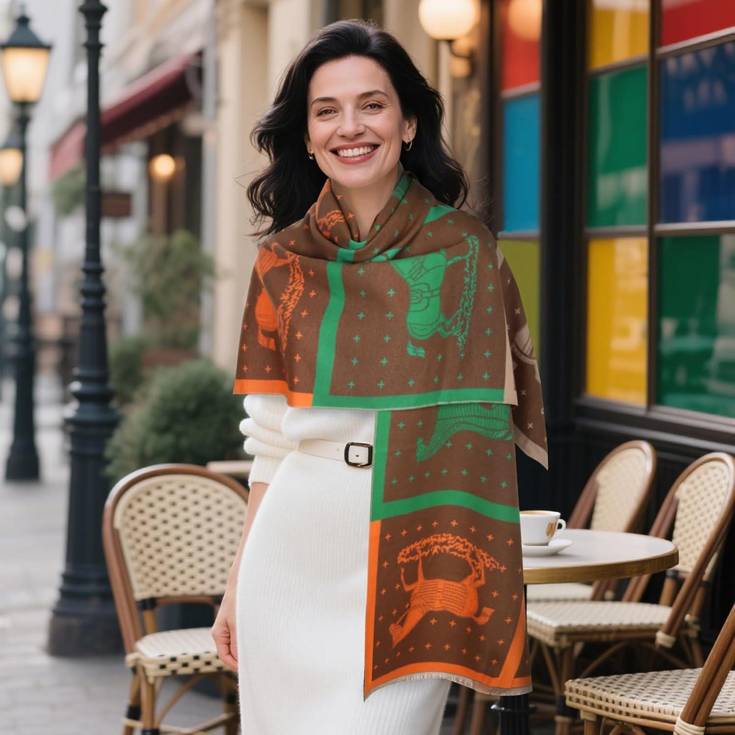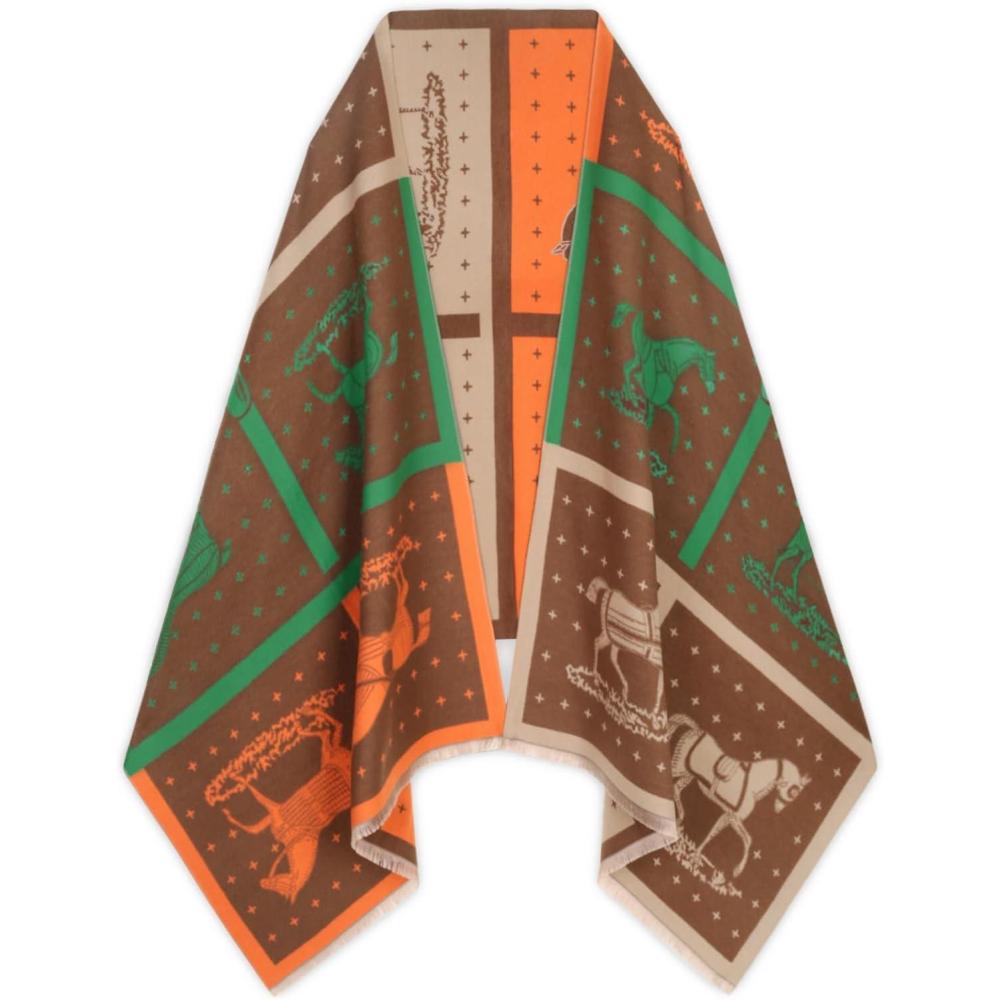 EXTREE Scarfs for Women Pashmina Silky Shawl Wrap for Evening Dressing Blanket Open Front Poncho Cape(Aje-saddle Brown-carriage)