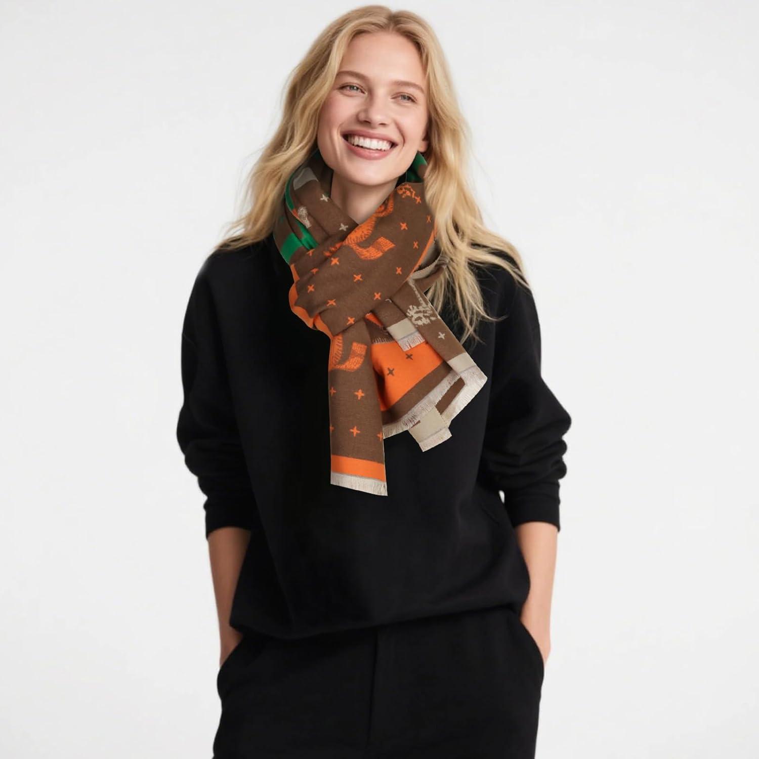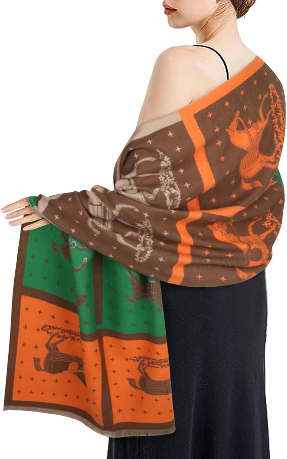 EXTREE Scarfs for Women Pashmina Silky Shawl Wrap for Evening Dressing Blanket Open Front Poncho Cape(Ajd-honey Orange-chocolate)