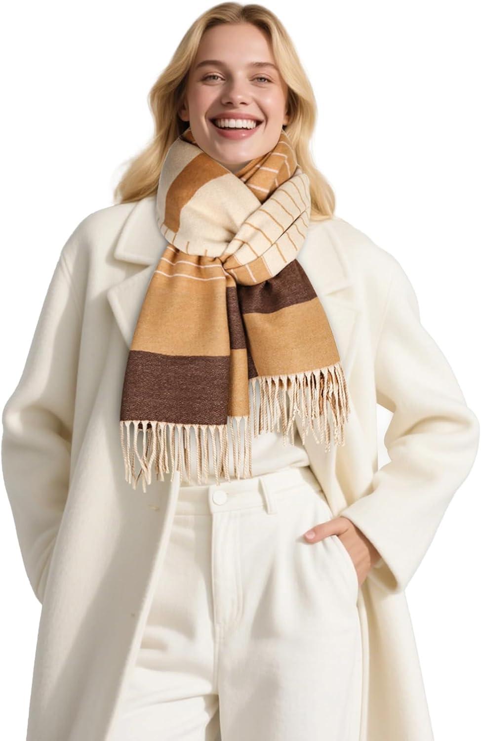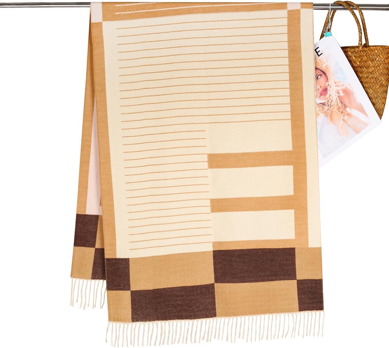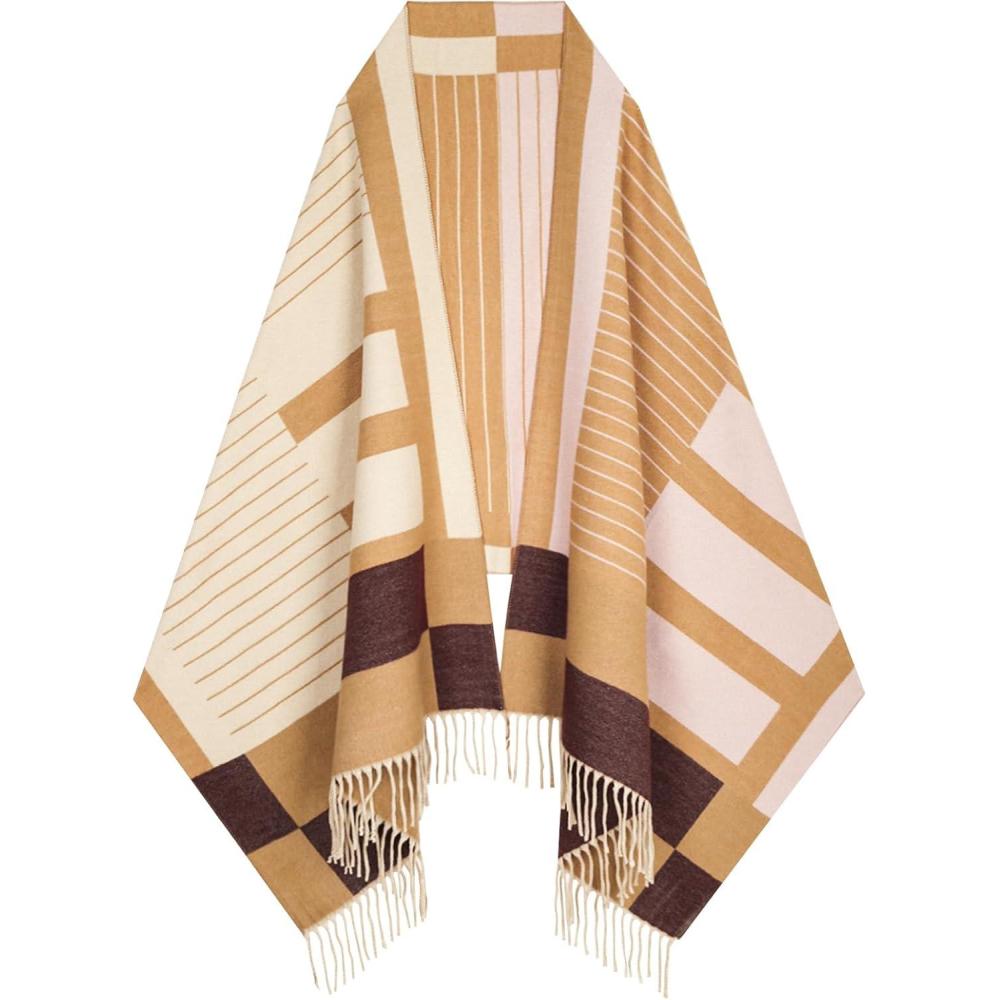 EXTREE Scarfs for Women Pashmina Silky Shawl Wrap for Evening Dressing Blanket Open Front Poncho Cape(Aji-khaki-beige)