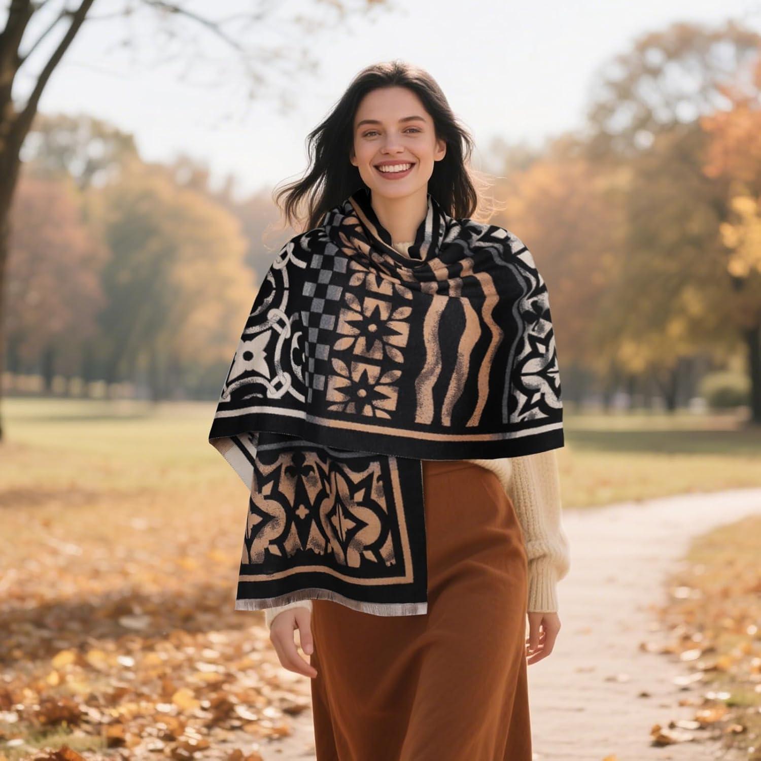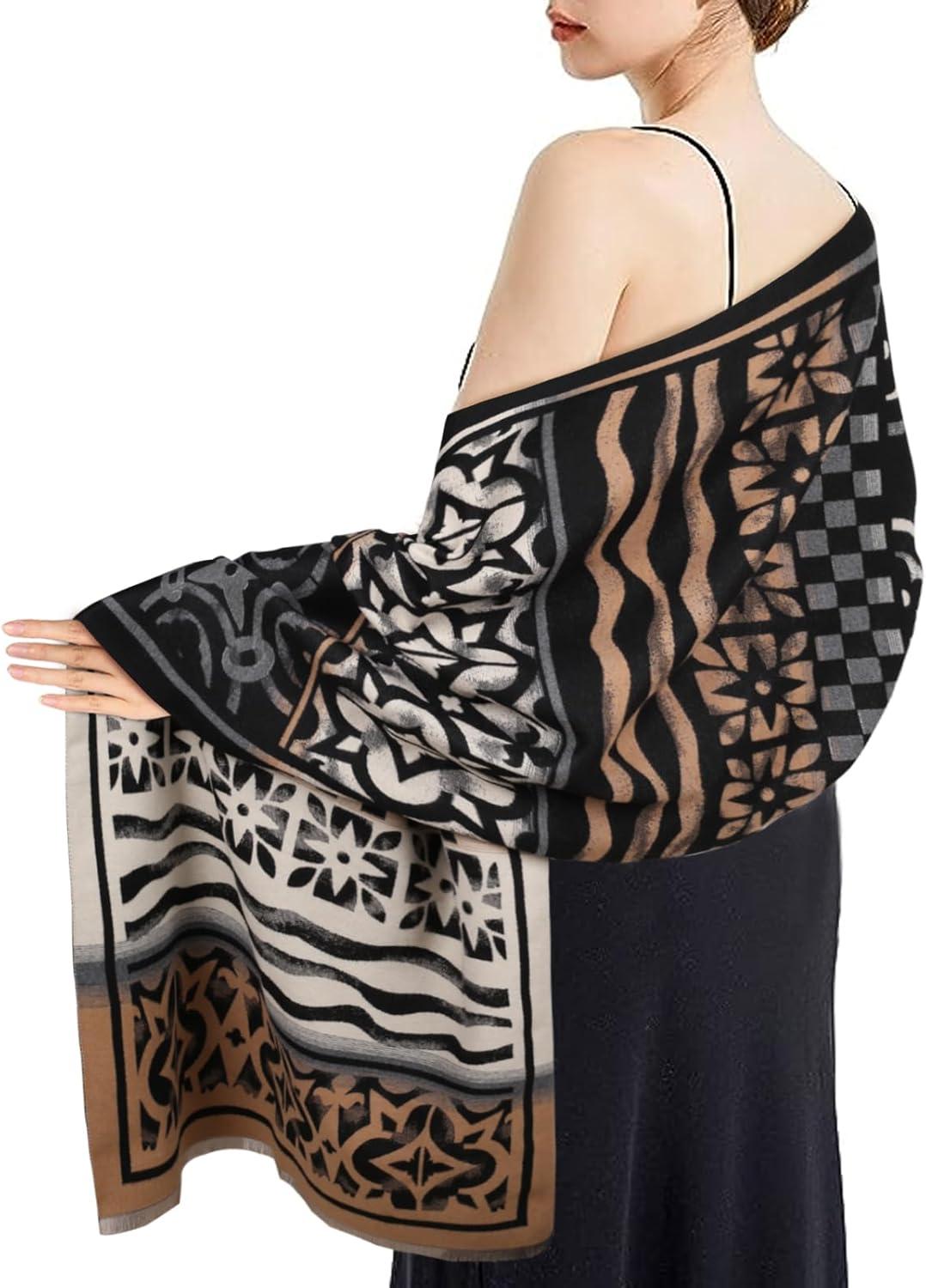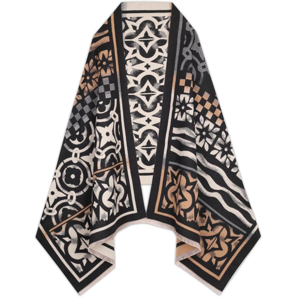 EXTREE Scarfs for Women Pashmina Silky Shawl Wrap for Evening Dressing Blanket Open Front Poncho Cape(Ajs-black-white)