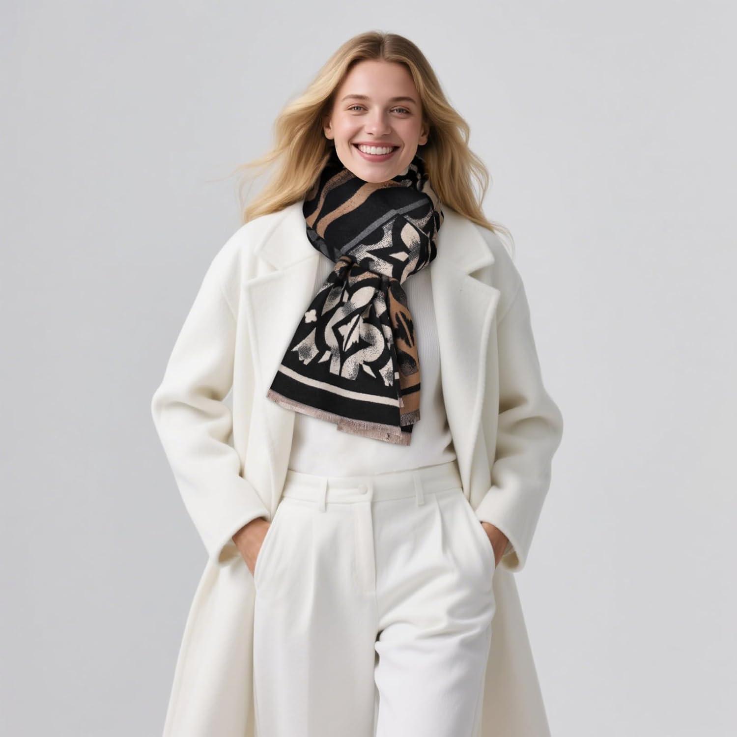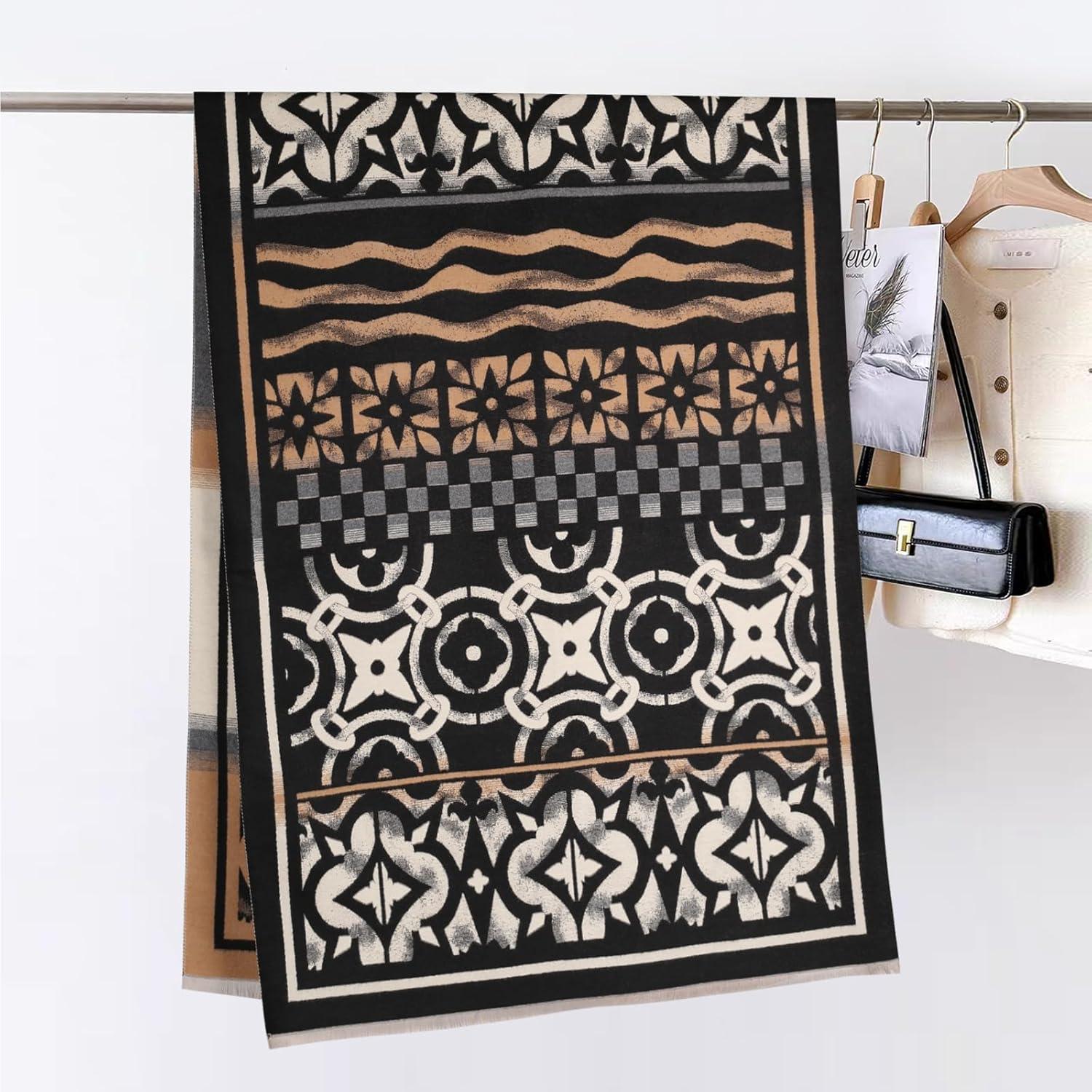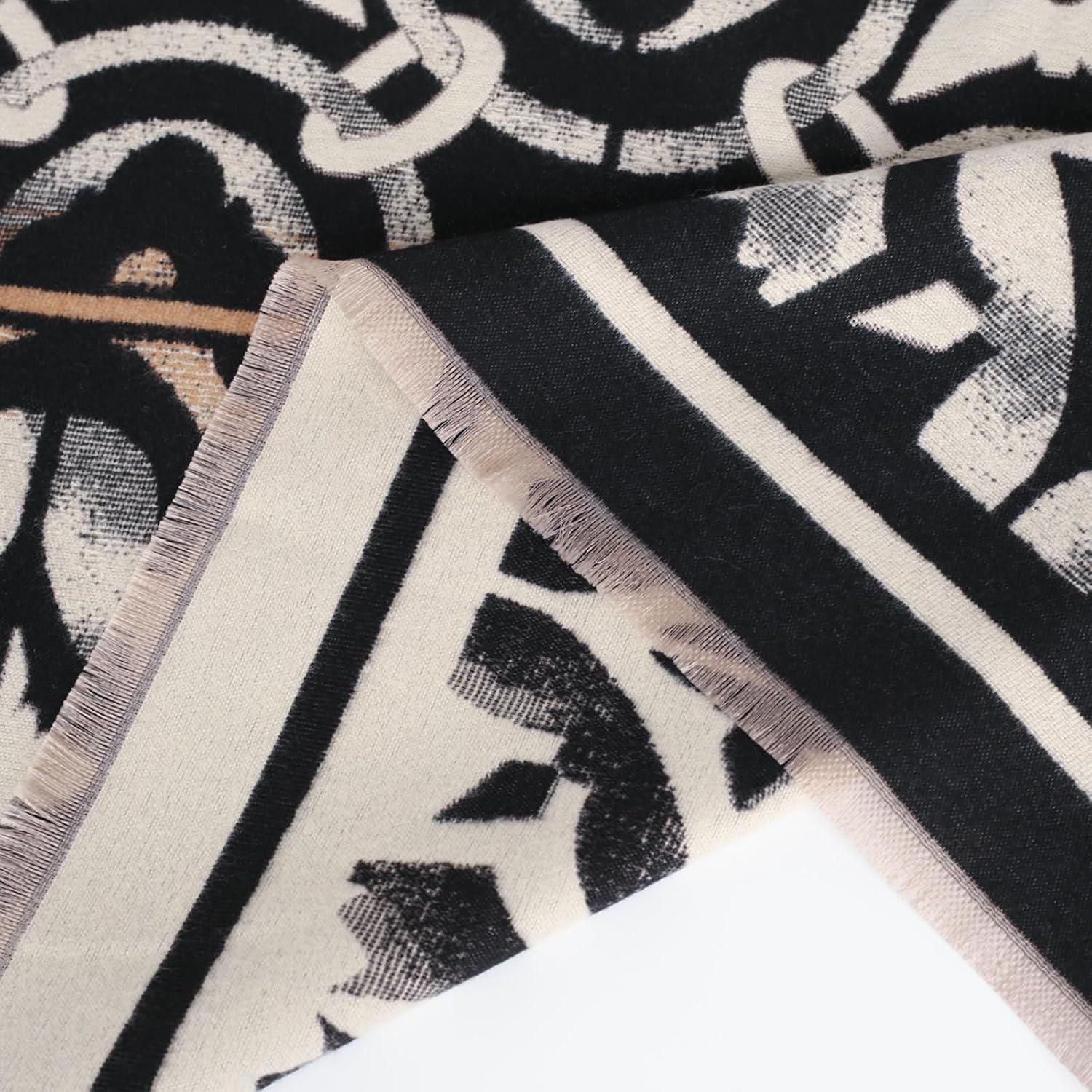 EXTREE Scarfs for Women Pashmina Silky Shawl Wrap for Evening Dressing Blanket Open Front Poncho Cape(Ajs-black-white)