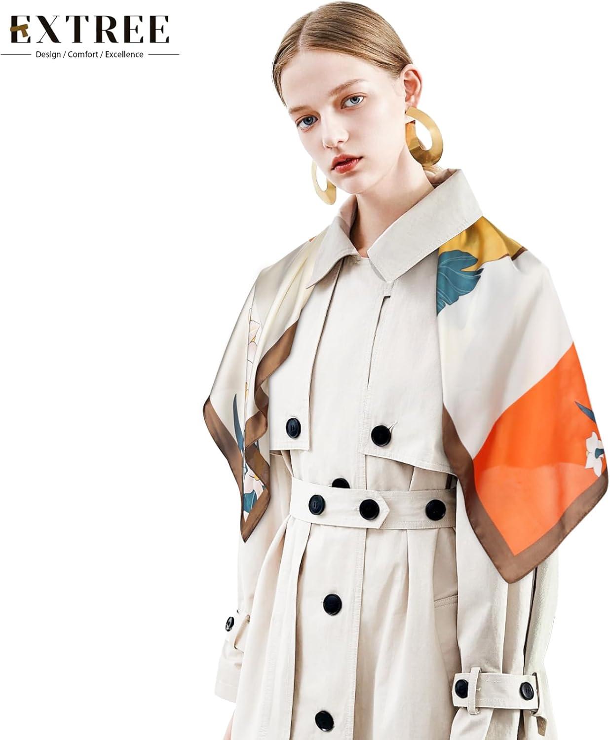 EXTREE Silk Feeling Scarf Medium Square Satin Head Scarf Sleeping Hair Wrapping for Women 27.5 × 27.5 inches(Beauty Lily)