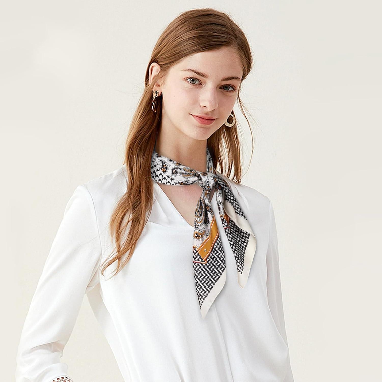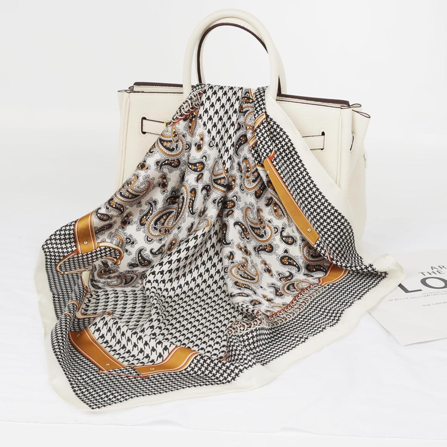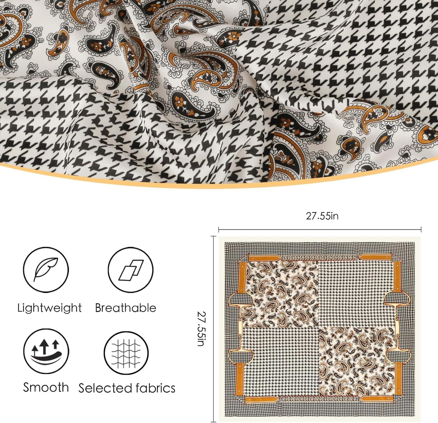EXTREE Silk Feeling Scarf Medium Square Satin Head Scarf Sleeping Hair Wrapping for Women 27.5 × 27.5 inches(Cashew Houndstooth)