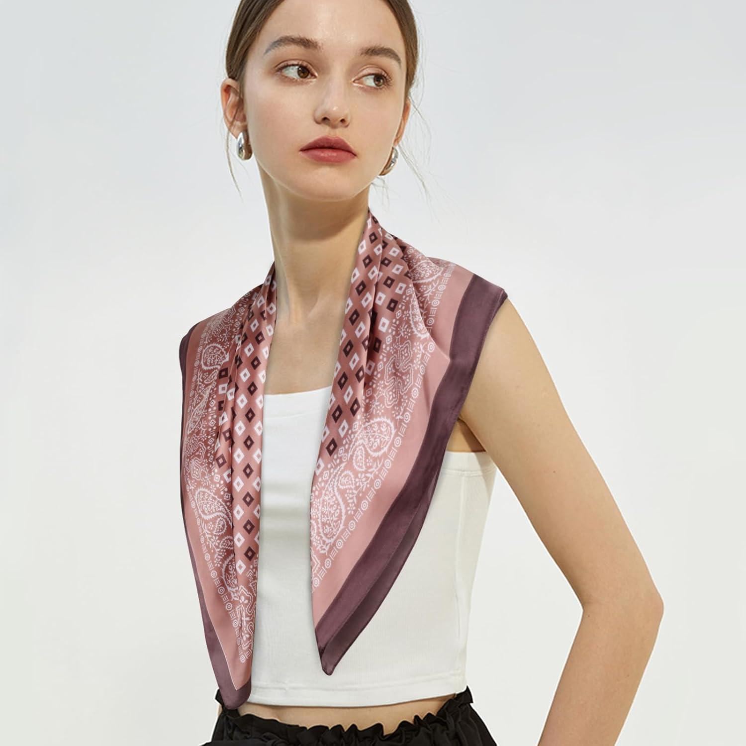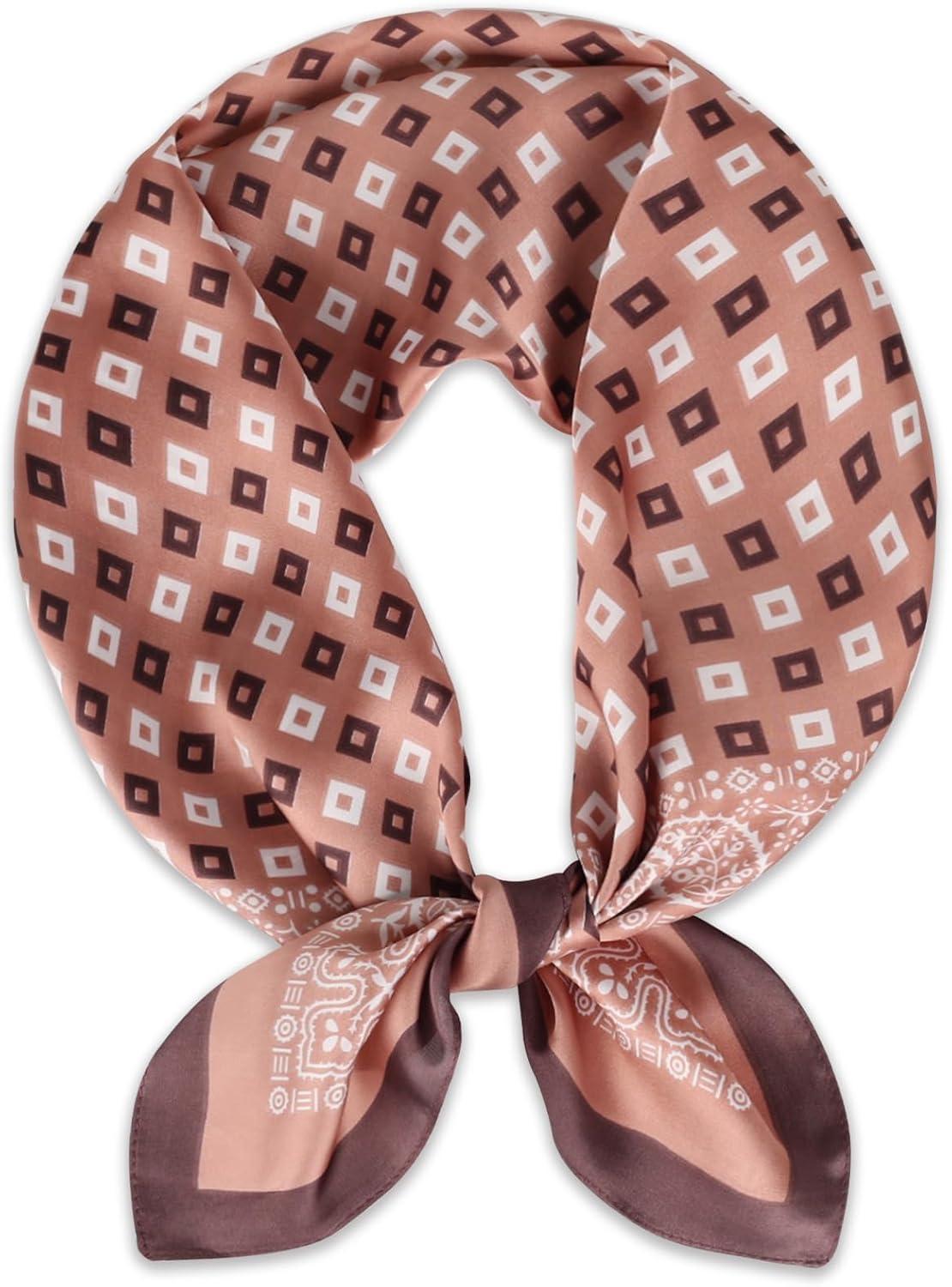 EXTREE Silk Feeling Scarf Medium Square Satin Head Scarf Sleeping Hair Wrapping for Women 27.5 × 27.5 inches(Cashew Houndstooth)