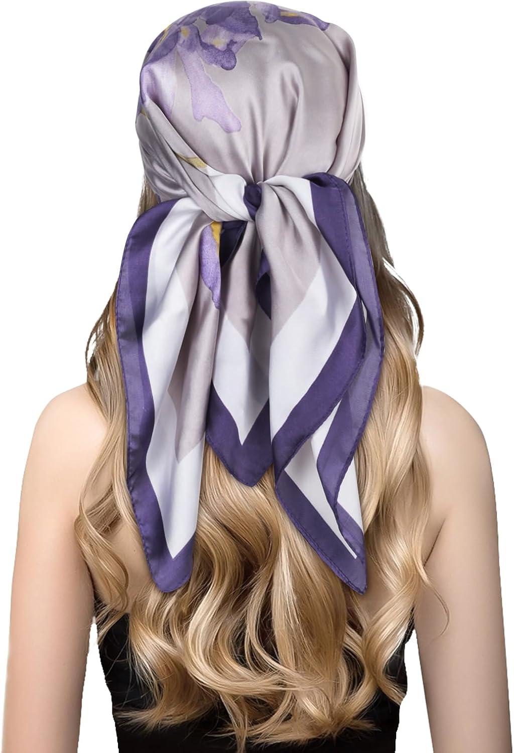 EXTREE Silk Feeling Scarf Medium Square Satin Head Scarf Sleeping Hair Wrapping for Women 27.5 × 27.5 inches(Purple Oriole)