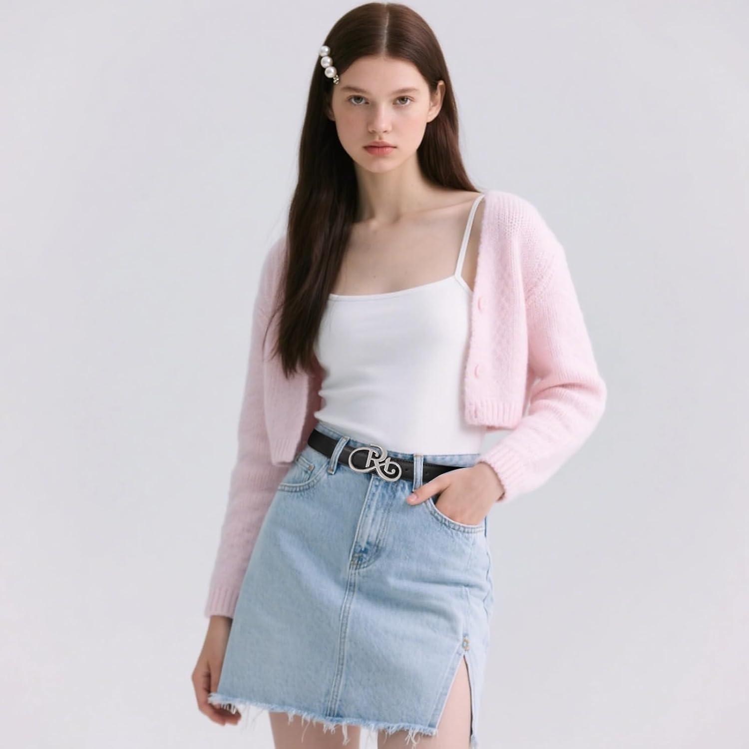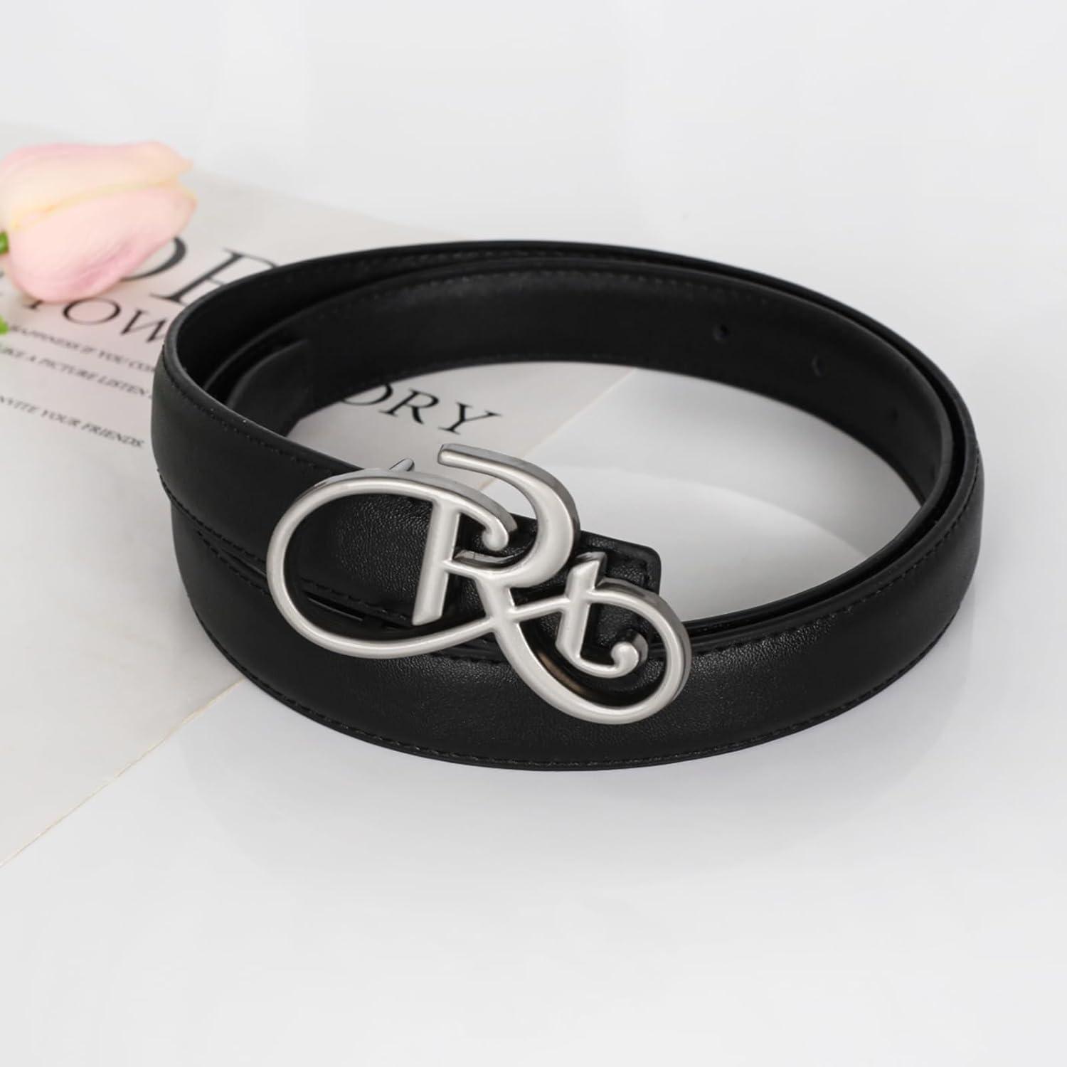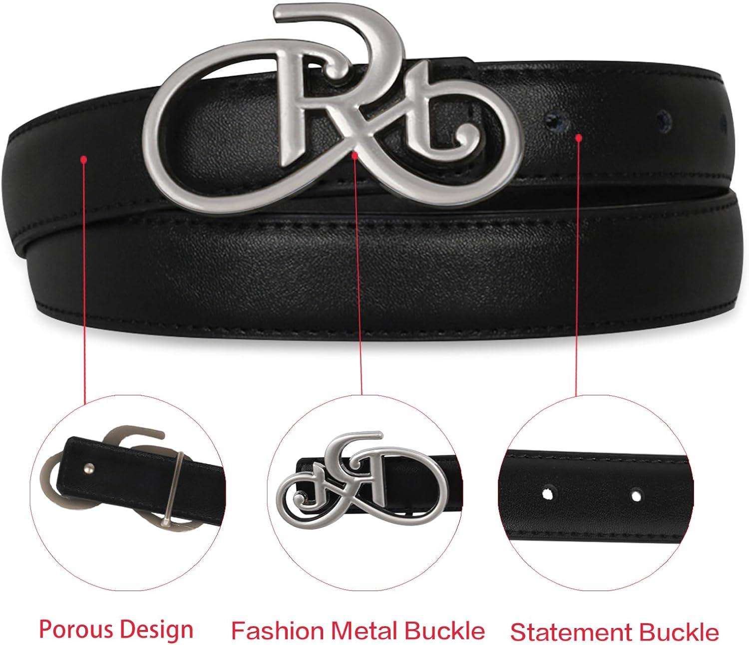 EXTREE Vintage Luxe Women’s Belt, Gold Buckle Design, Ideal for Dresses, Jeans Gift Accessory.(Titanium Steel Silver Lettering)