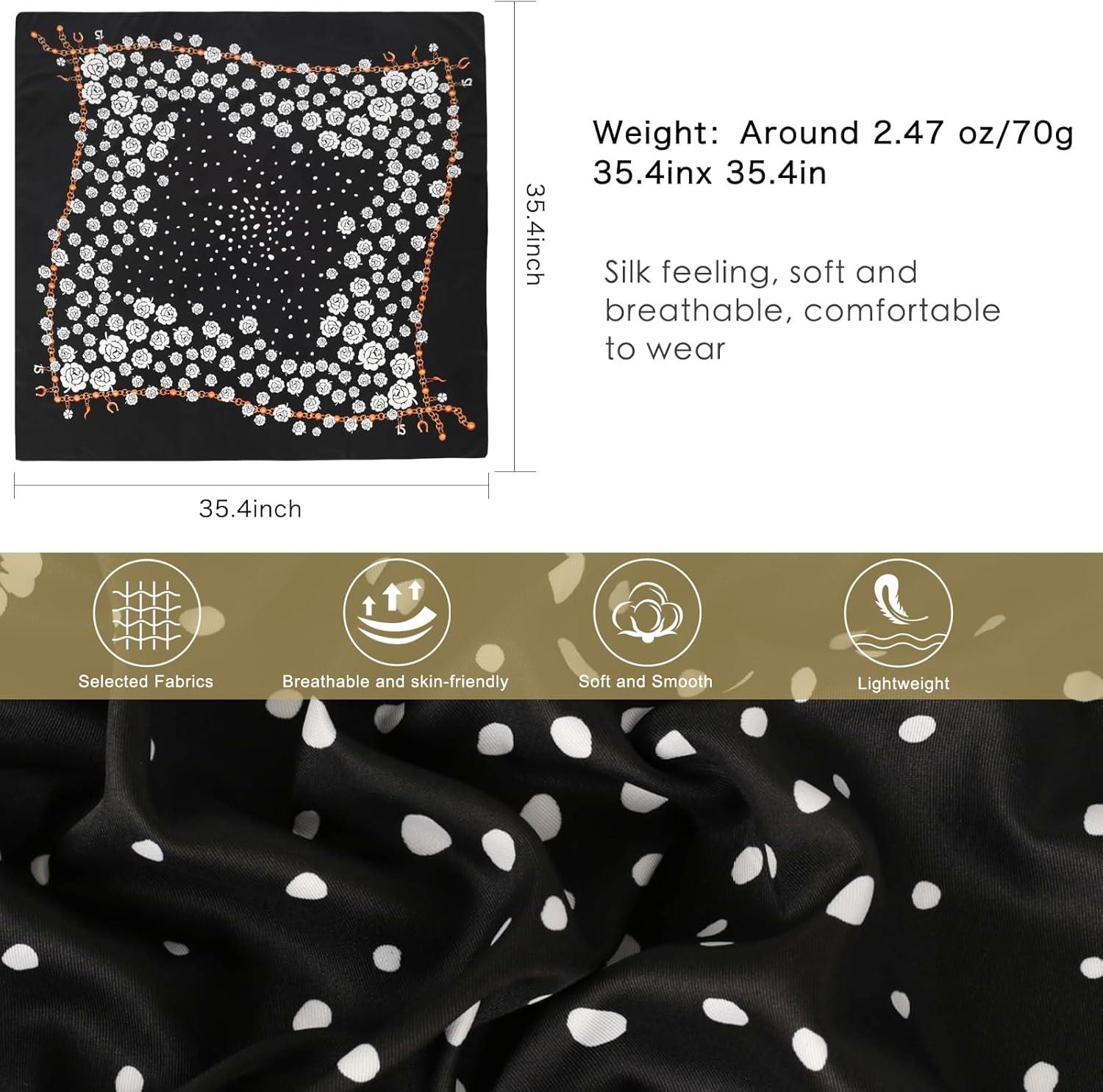 EXTREE Women's 35 inch Fashion Headscarf Silk Satin Scarf for Hair Wrapping at Night Bandana Square Scarf for Sleeping(Black Camellia)