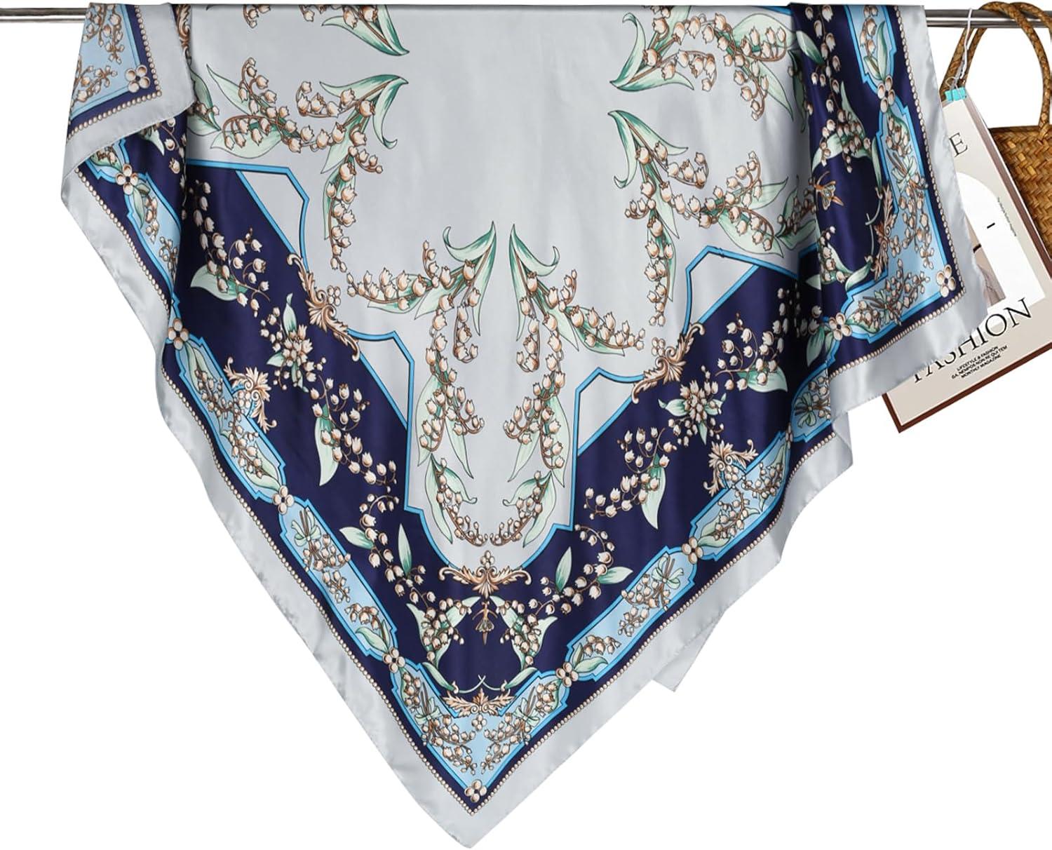 EXTREE Women's 35 inch Fashion Headscarf Silk Satin Scarf for Hair Wrapping at Night Bandana Square Scarf for Sleeping(Classic Blue)
