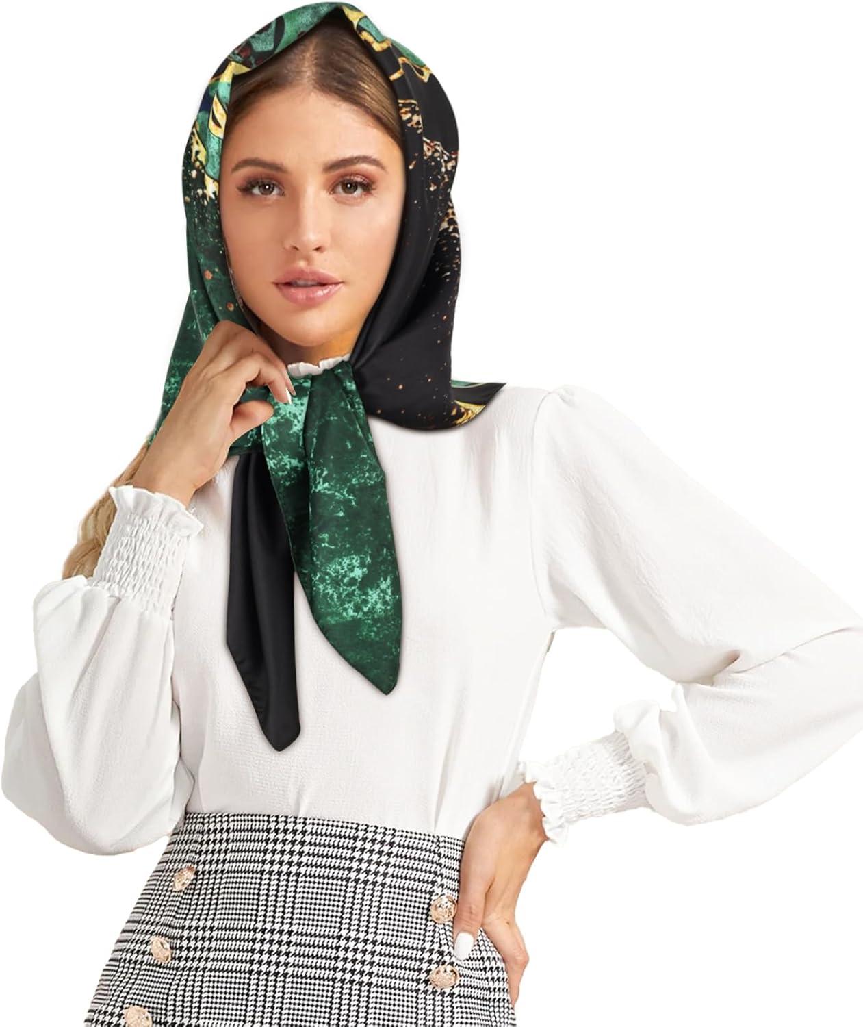 EXTREE Women's 35 inch Fashion Headscarf Silk Satin Scarf for Hair Wrapping at Night Bandana Square Scarf for Sleeping(Green Seine River)