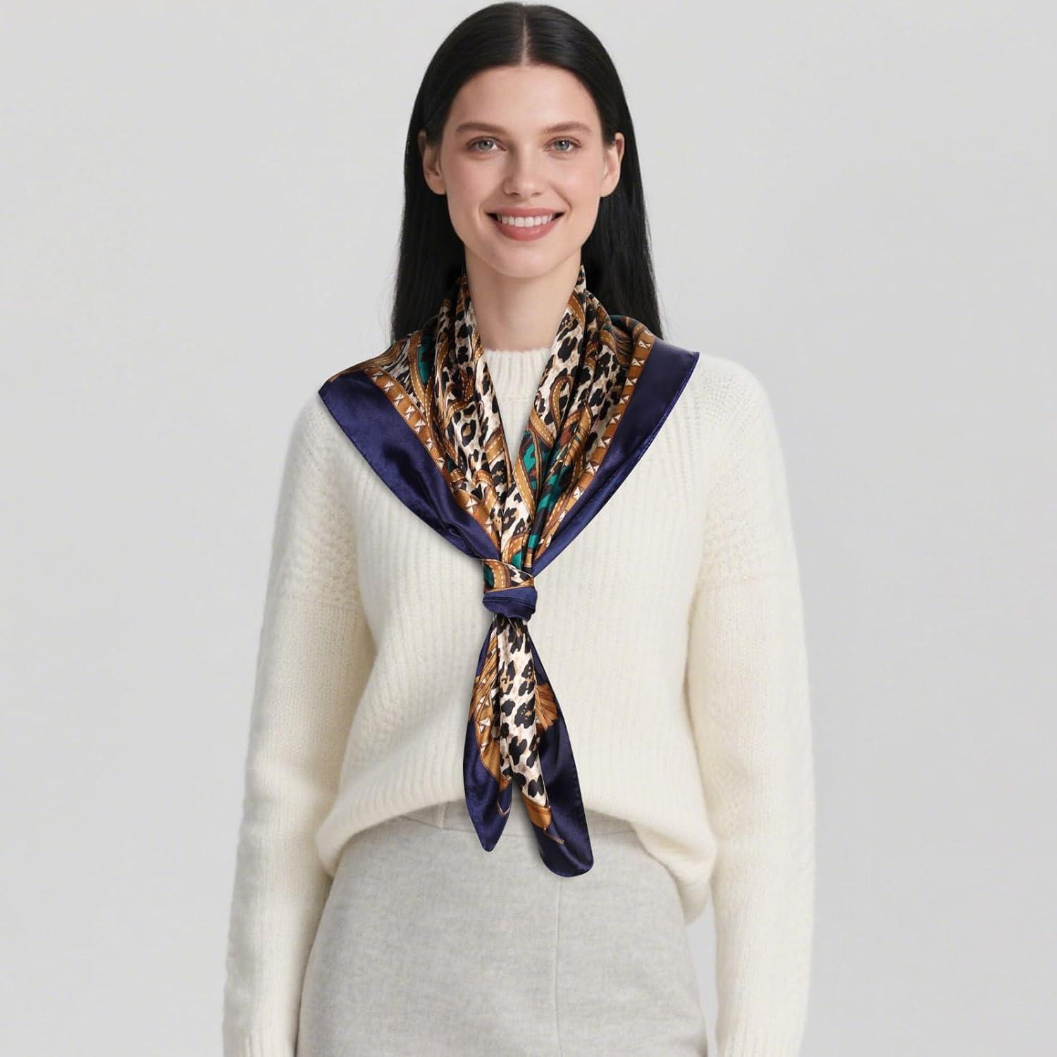 EXTREE Women's 35 inch Fashion Headscarf Silk Satin Scarf for Hair Wrapping at Night Bandana Square Scarf for Sleeping(Leopard Tassel Dark Green)