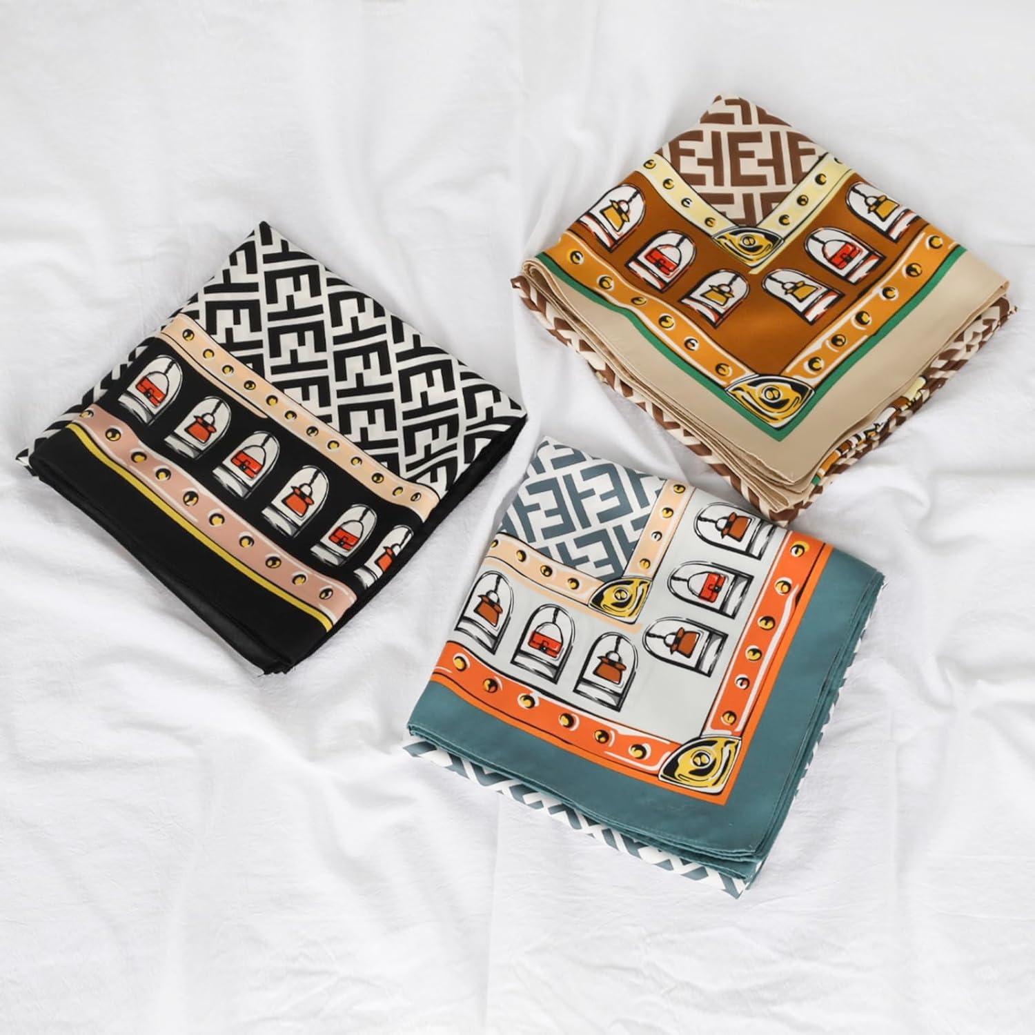 EXTREE Women’s 35 inch Fashion Headscarf Silk Satin Scarf for Hair Wrapping at Night Bandana Square Scarf for Sleeping(Letters Black Gold)