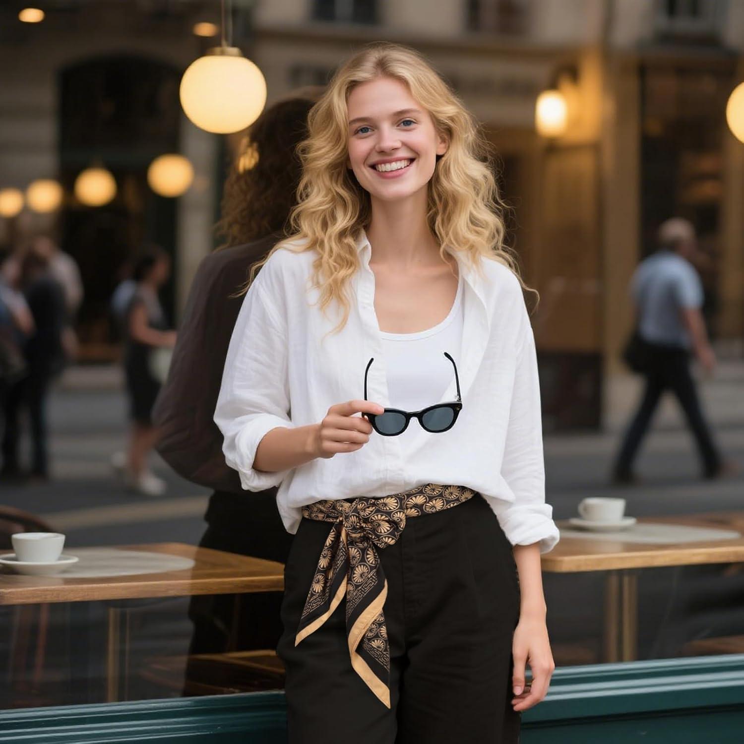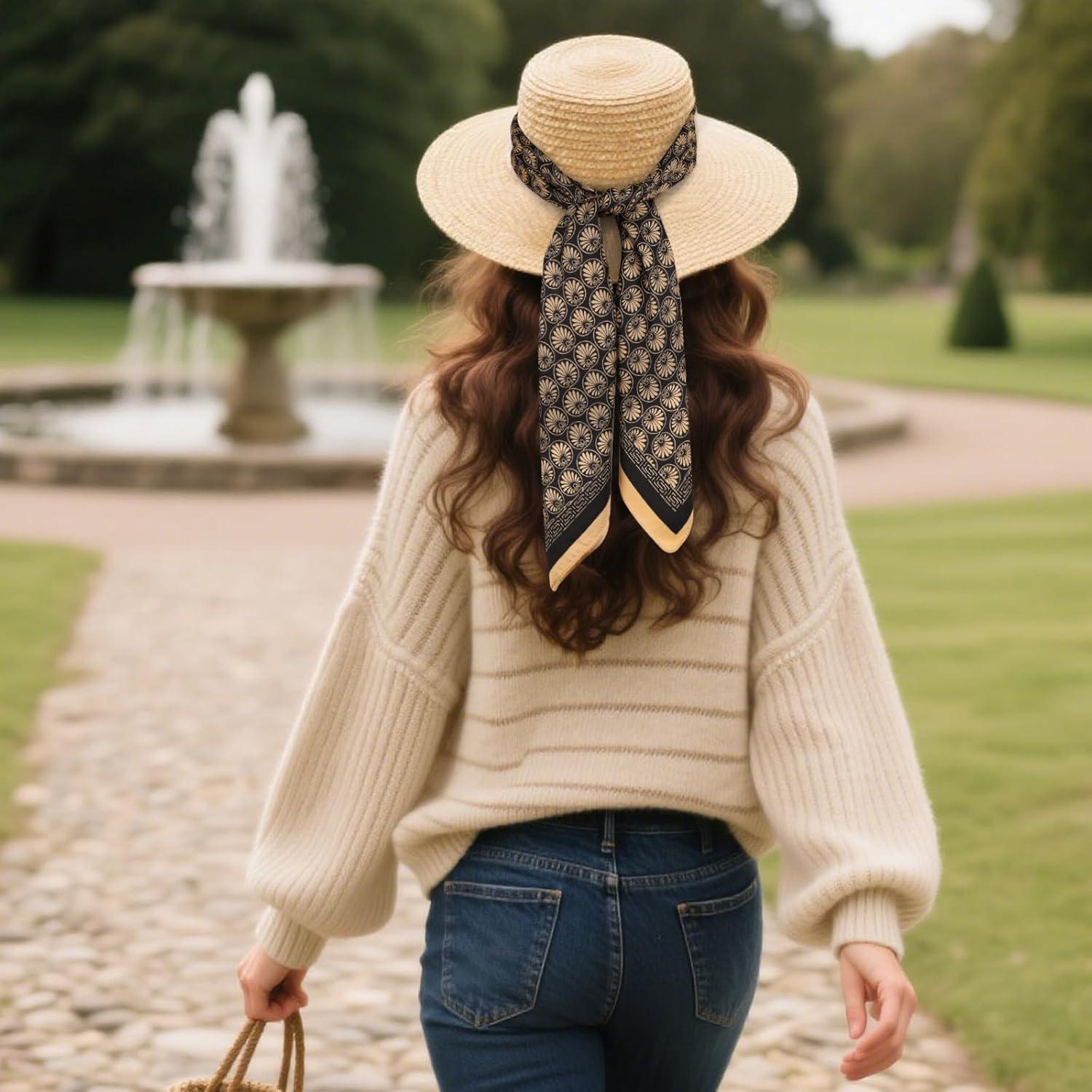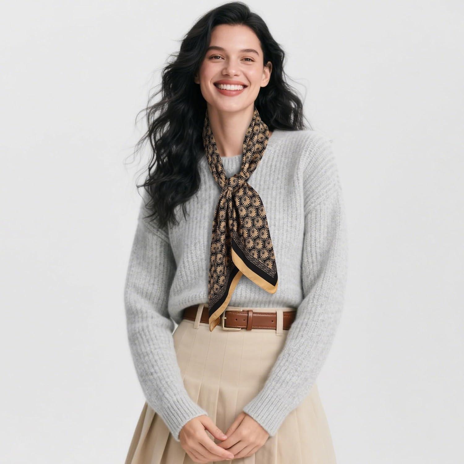 EXTREE Women’s 35 inch Fashion Headscarf Silk Satin Scarf for Hair Wrapping at Night Bandana Square Scarf for Sleeping(Scallop Pattern Black Gold)