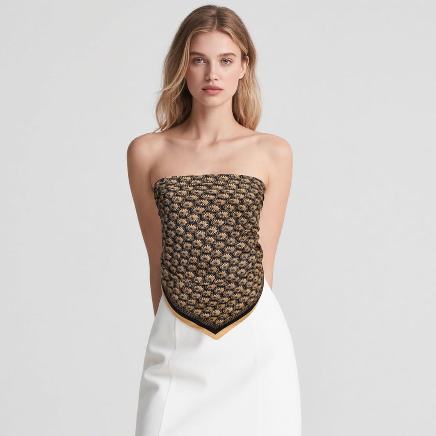 imageEXTREE Womens 35 inch Fashion Headscarf Silk Satin Scarf for Hair Wrapping at Night Bandana Square Scarf for SleepingScallop Pattern Black Gold