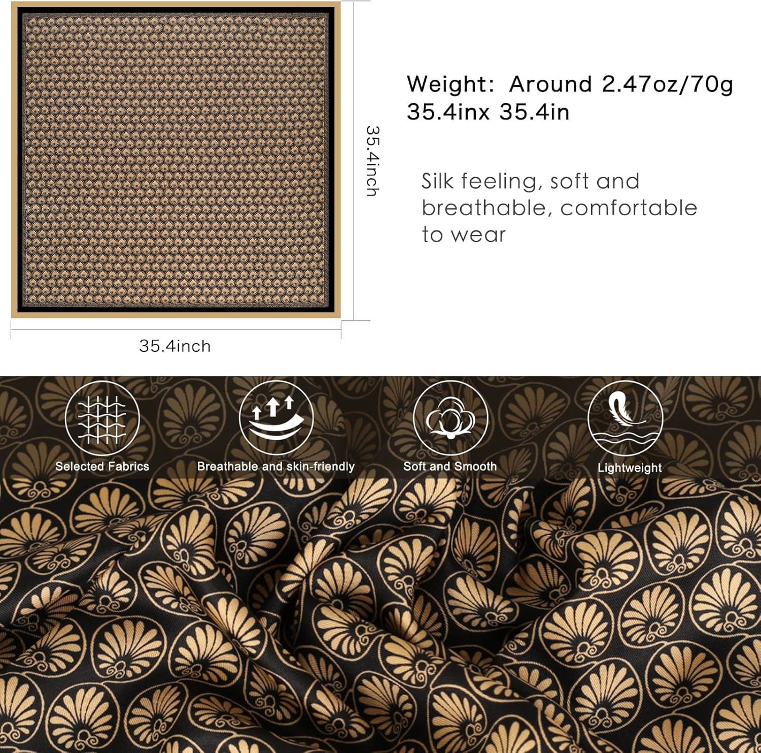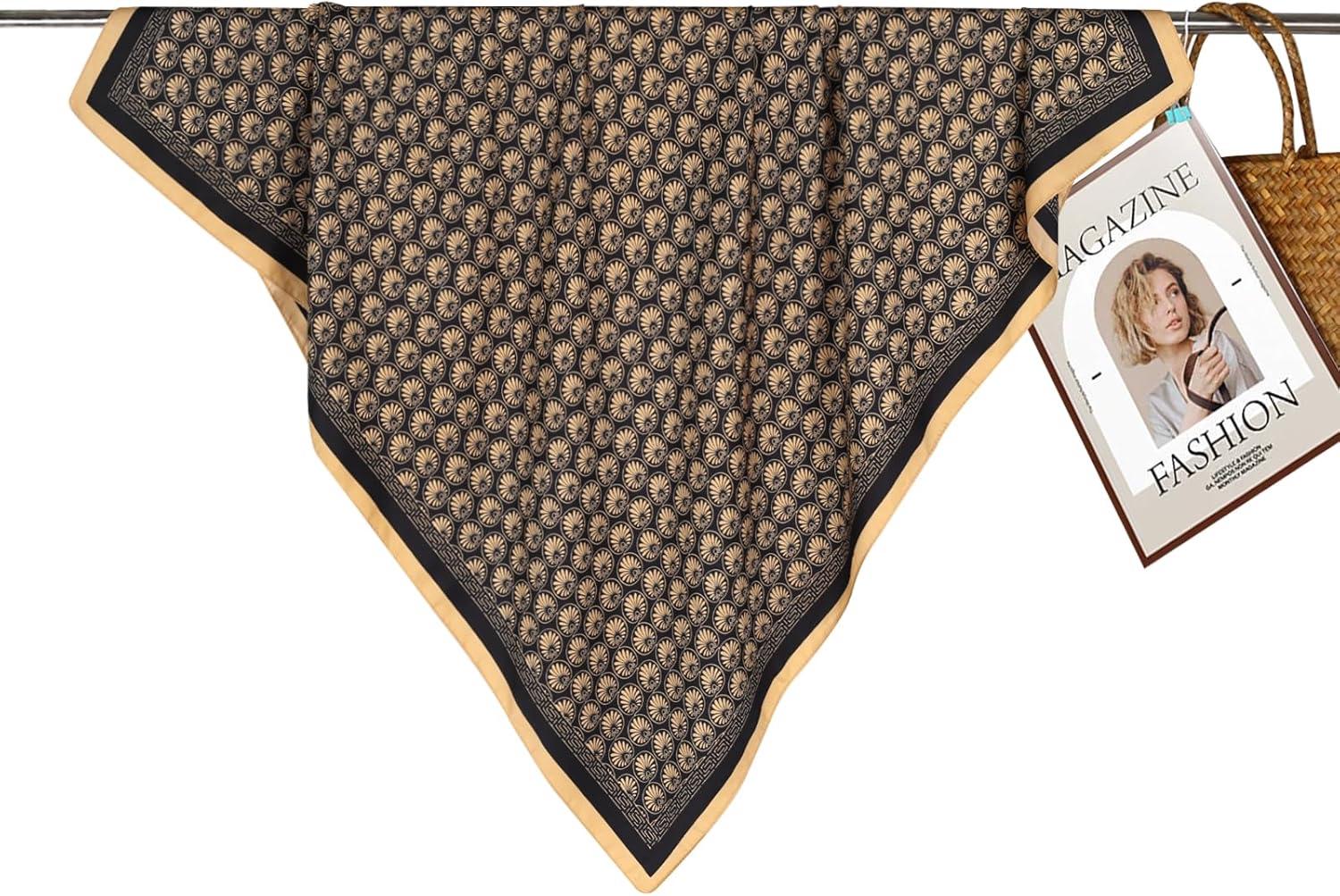 EXTREE Women's 35 inch Fashion Headscarf Silk Satin Scarf for Hair Wrapping at Night Bandana Square Scarf for Sleeping(Scallop Pattern Black Gold)