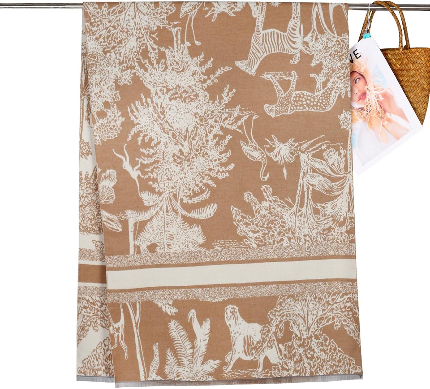 EXTREE Women's Scarf Pashmina Shawls and Wraps for Evening Dress Bridesmaid Wedding Bridal Winter Warm Long Large Scarves(Animal Forest Khaki)