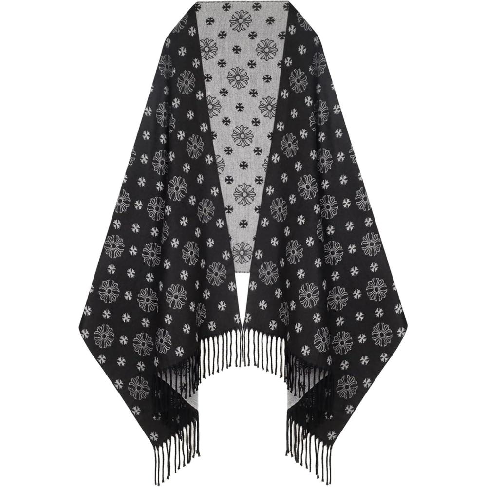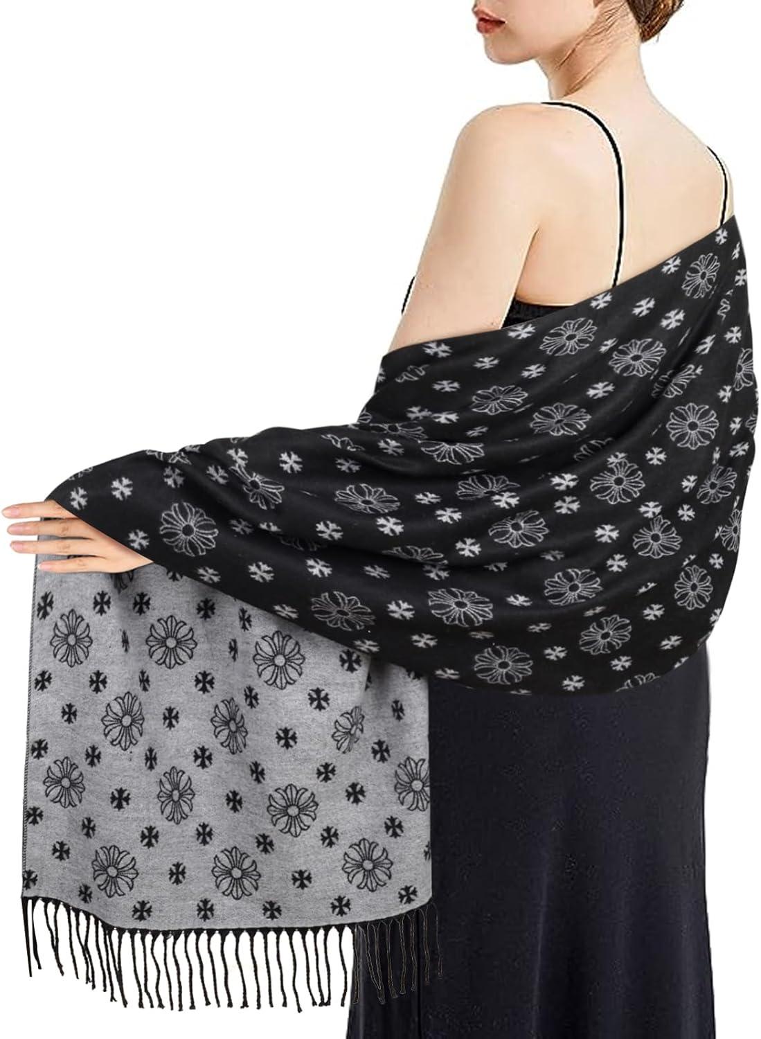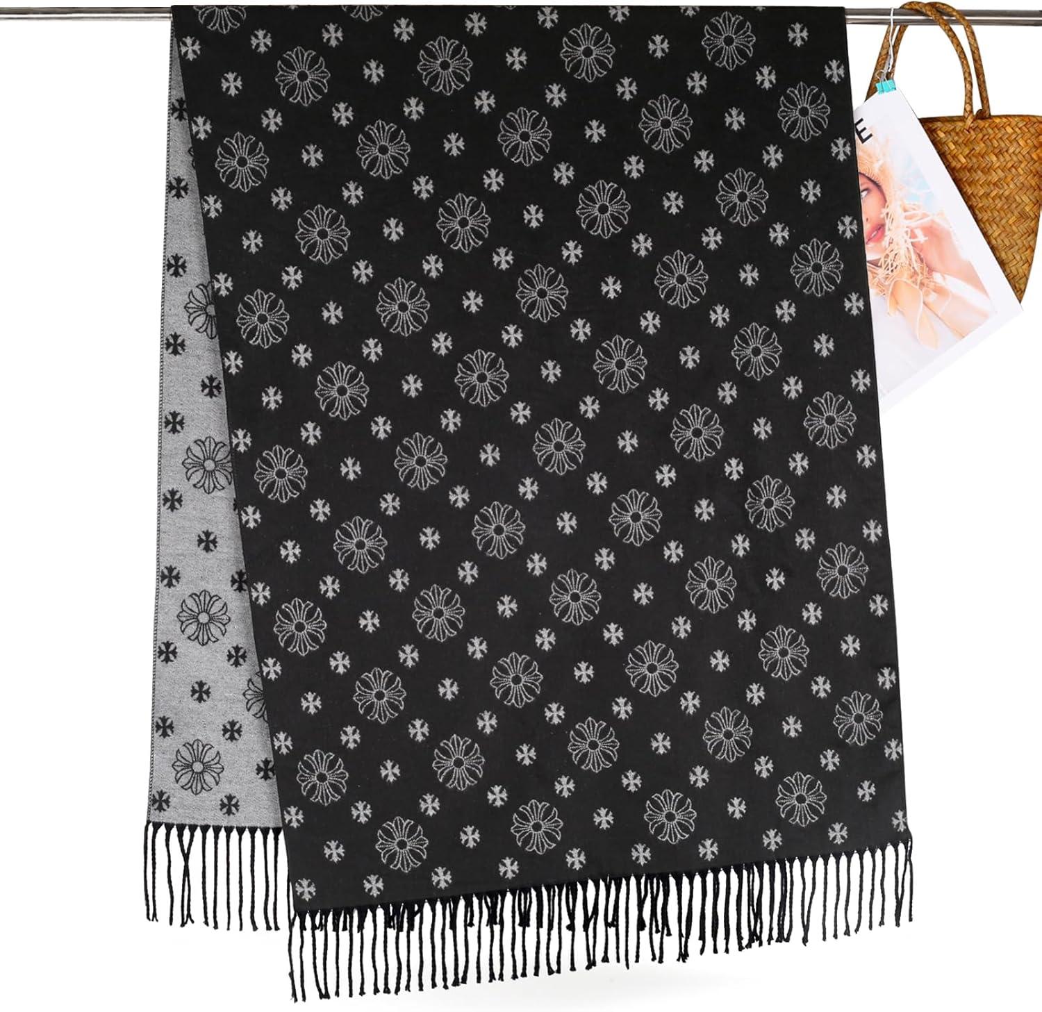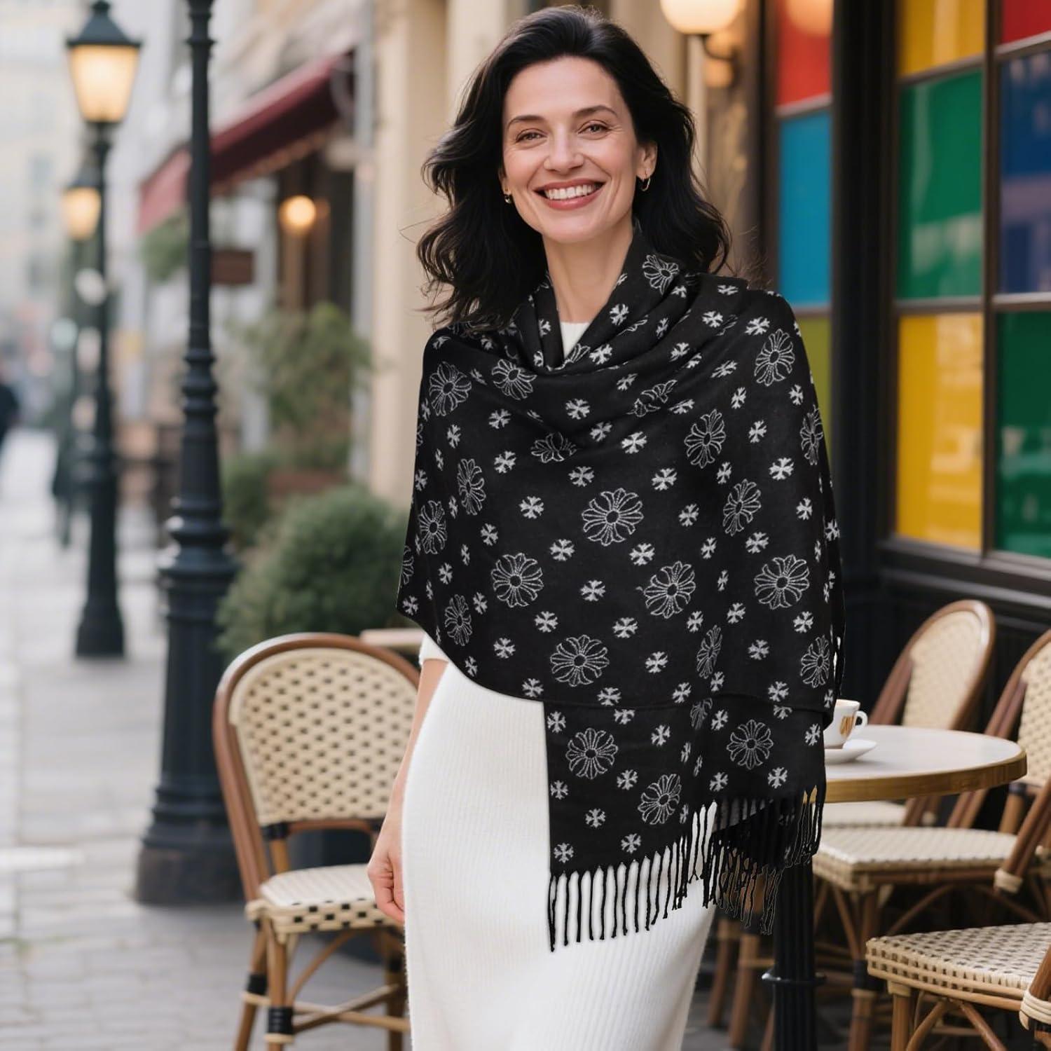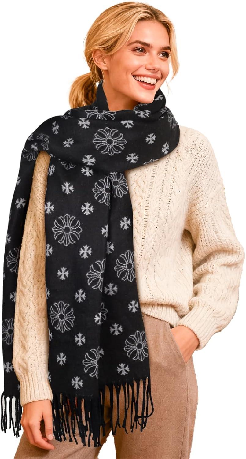 EXTREE Women’s Scarf Wrap, Soft & Warm Shawl, Lightweight Skin-Friendly, Versatile for All Seasons, Holiday Gift Idea(Black and White Cross Snowflake)